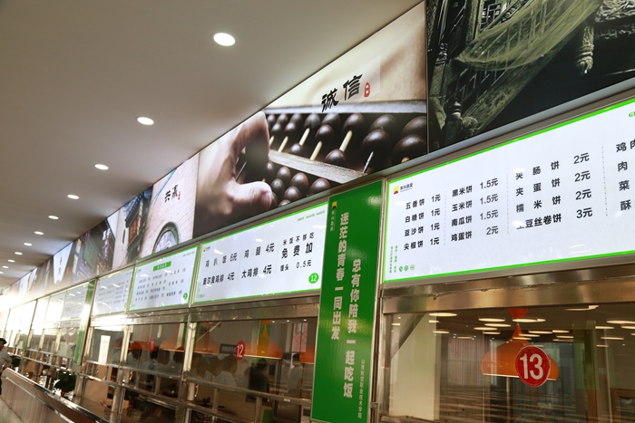 在菜品价格方面,学院也充分考虑到了各种因素,通过调整设置菜品的价格,满足师生各种水平的消费。“饭菜的价格普遍在4元至10元期间,但我看见还有两元菜区,这个挺好的,给学校赞一个。”2015级学生李亚宁很有感触,“这说明学校考虑到了一些家庭贫困的学生,反正是在学校吃饭比在外面吃能省不少钱。”(实习生纪佳文)