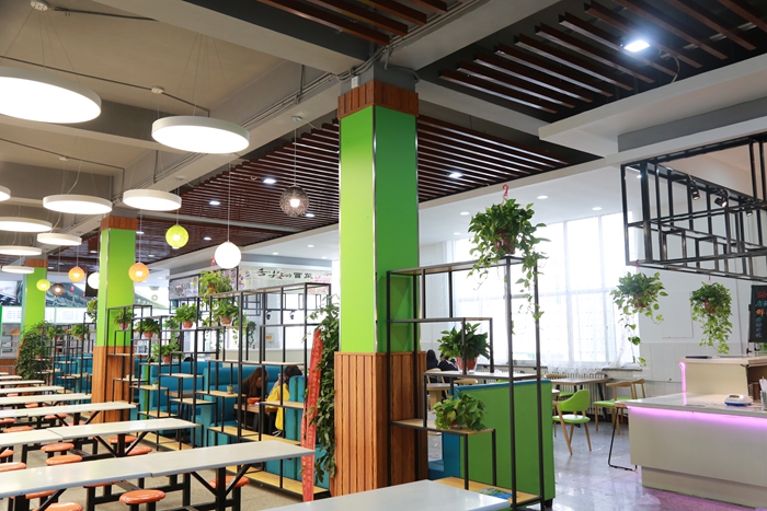 餐厅职能与功效合理调整,也体现出了学院对全体师生的人文关怀。餐厅增设各类服务窗口并合理划分不同区域,尽可能满足师生不同方面的就餐要求;考虑到平时有师生们在餐厅学习或工作,餐厅新设了不同类型的桌椅,力求成为集师生休闲、学习、用餐、工作等功能为一体的综合性场所,提高了餐厅的实用度。