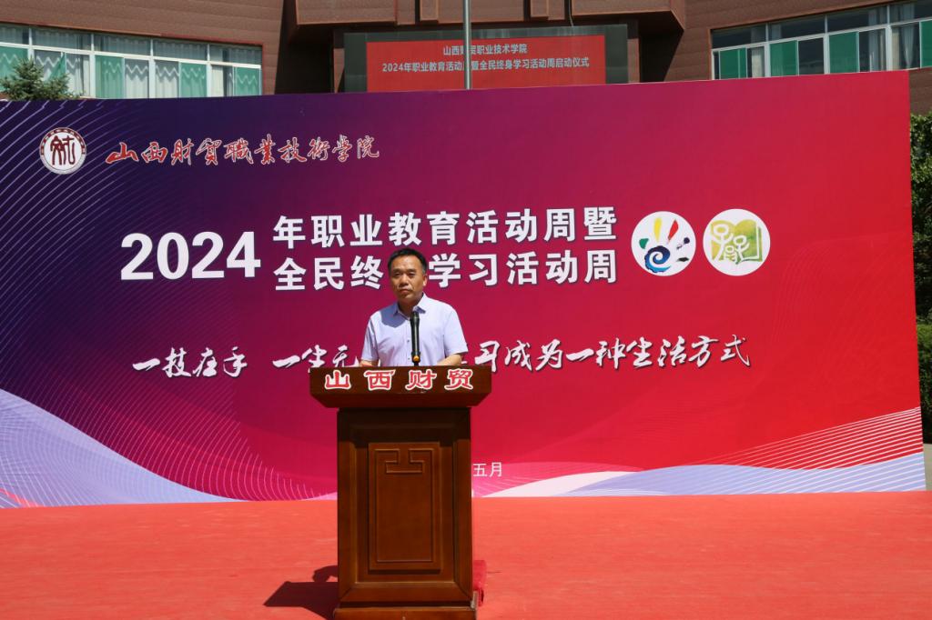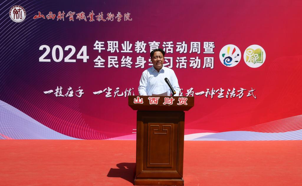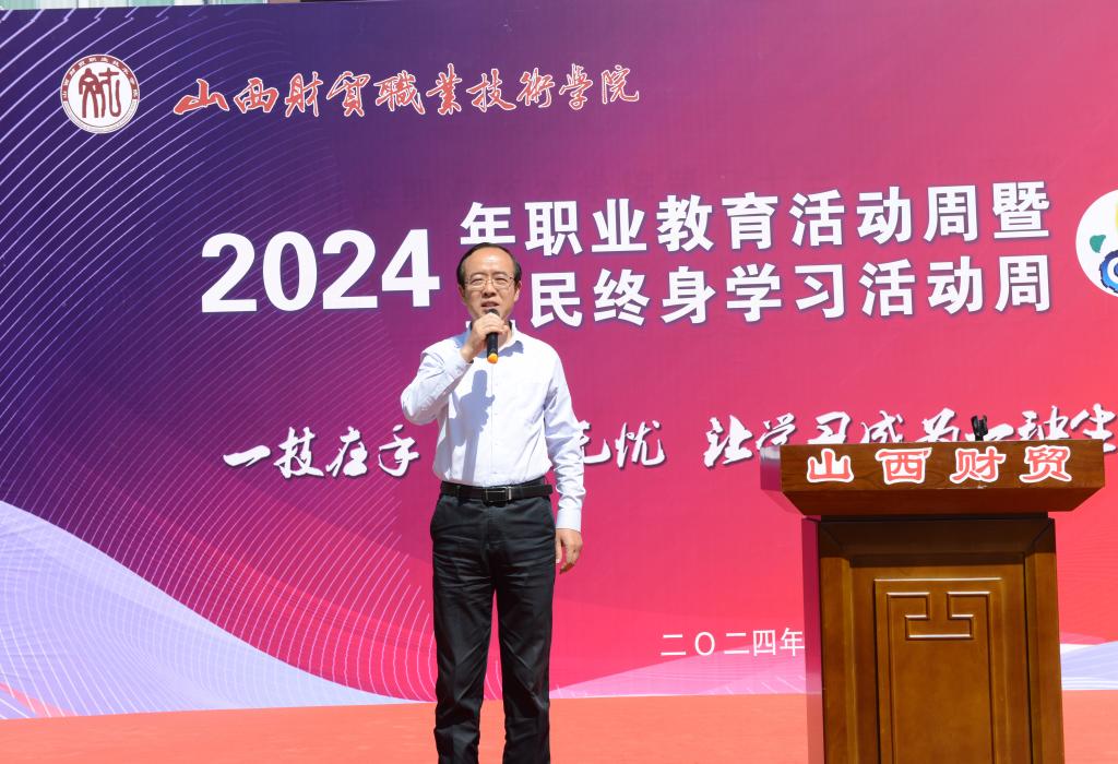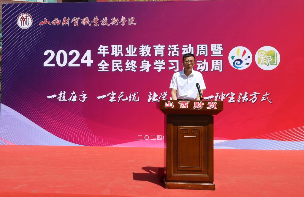 党委书记乔忠华宣布2024年山西财贸职业技术学院职业教育活动周暨全民终身学习活动周正式启动。
