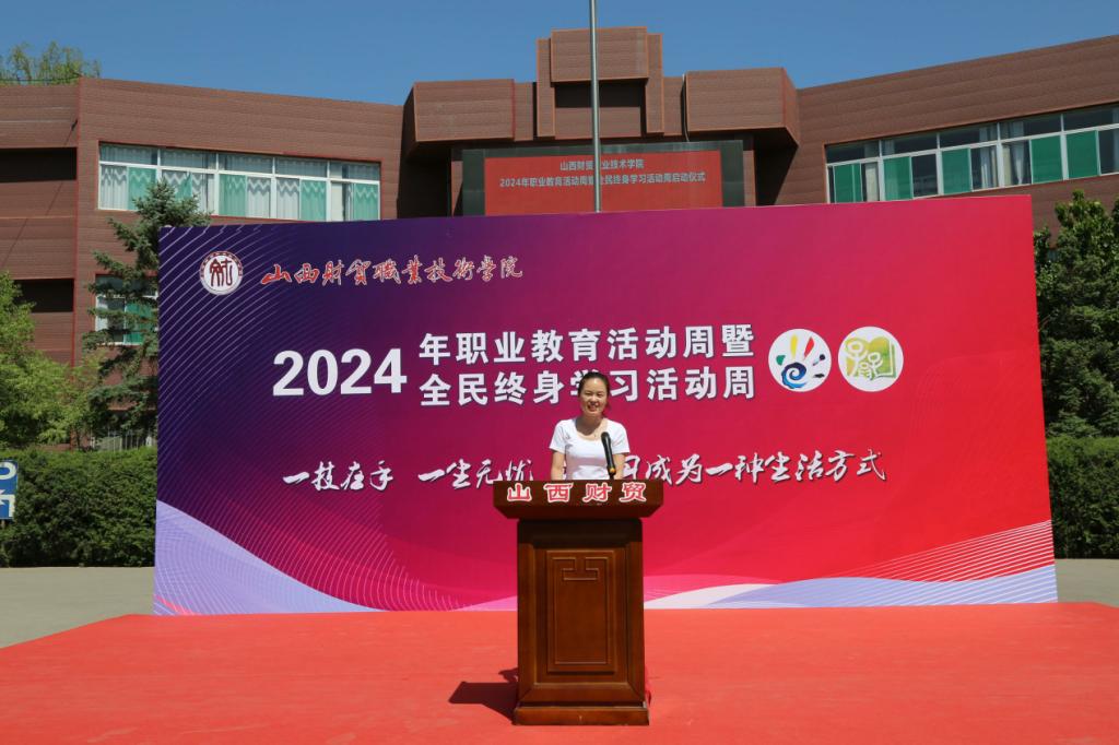 副院长王振中宣读《2024年山西财贸职业技术学院职业教育活动周暨全民终身学习活动周活动方案》。