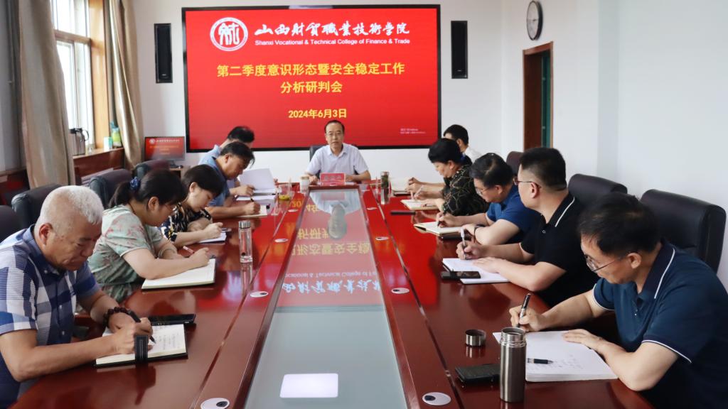 6月3日下午,学院召开意识形态暨安全稳定工作分析研判会。党委书记乔忠华传达上级文件及会议精神并讲话,其他班子成员结合各自分管领域对近期意识形态和安全稳定工作进行安排部署。会议由党委副书记张合义主持。