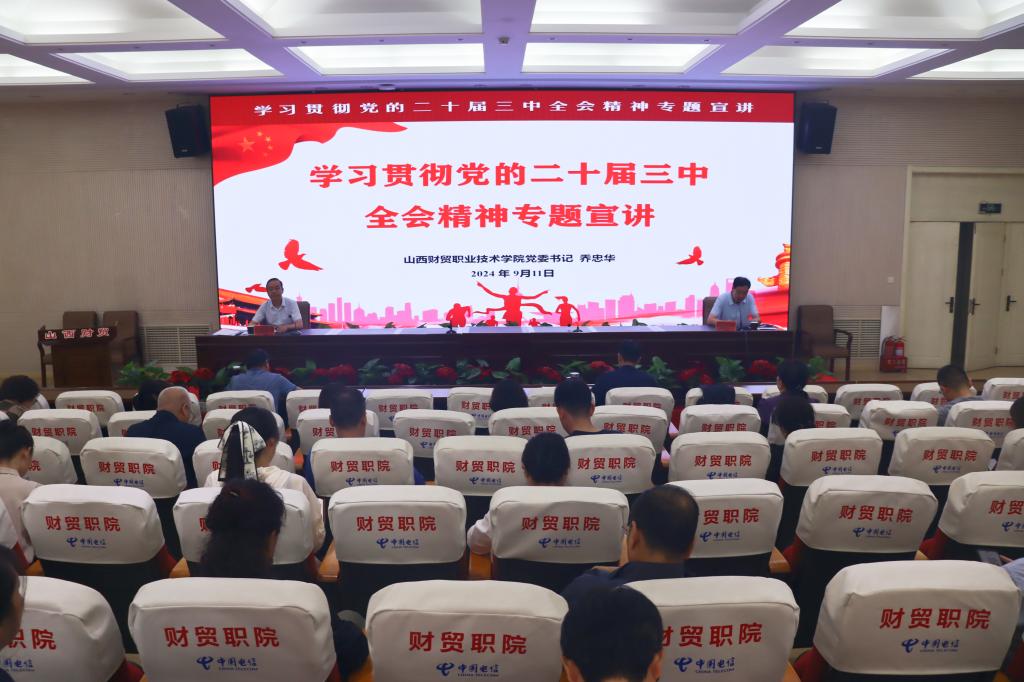 为深入学习贯彻落实党的二十届三中全会精神,推动学院各项工作高质量发展,9月11日上午,党委书记乔忠华在砺志楼大报告厅作党的二十届三中全会精神专题宣讲。会议由党委副书记张合义主持。