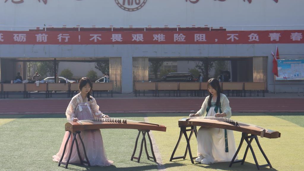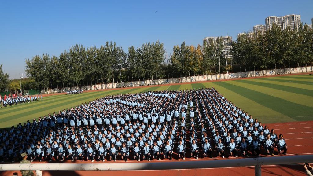 军训会操表演在雄壮的国歌声中拉开帷幕。
