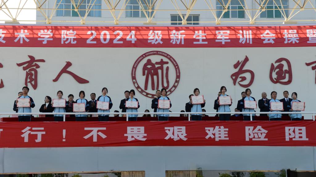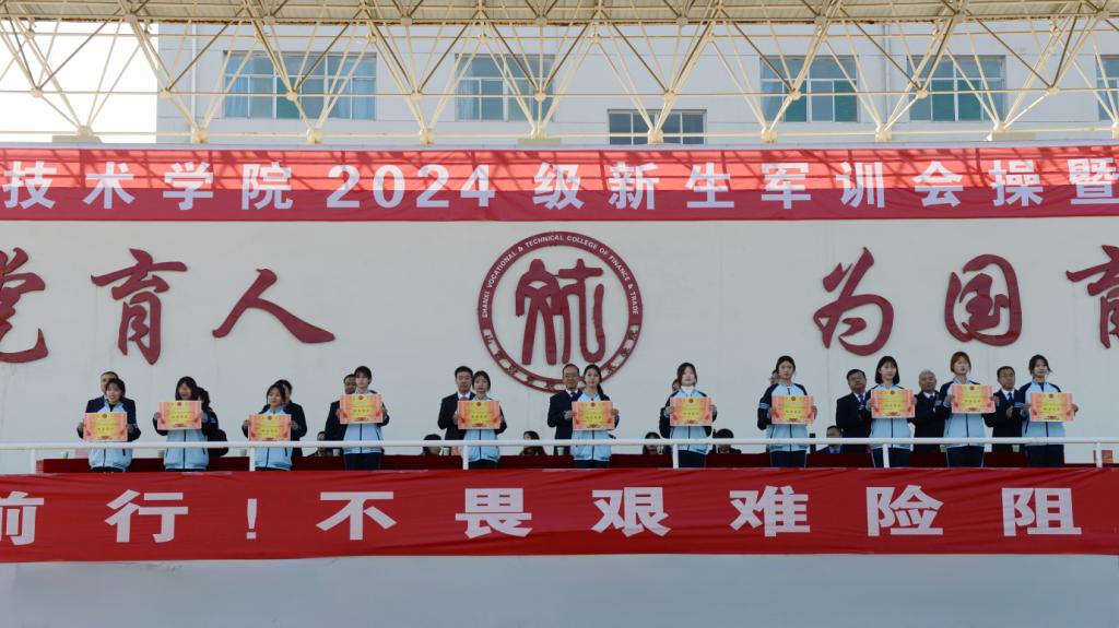 党委副书记、院长弓志刚宣读获得2024级新生军事训练军训优秀连队、内务评比标兵宿舍和军训标兵的表彰名单。与会领导为获得表彰的个人和集体颁发荣誉证书和奖状。