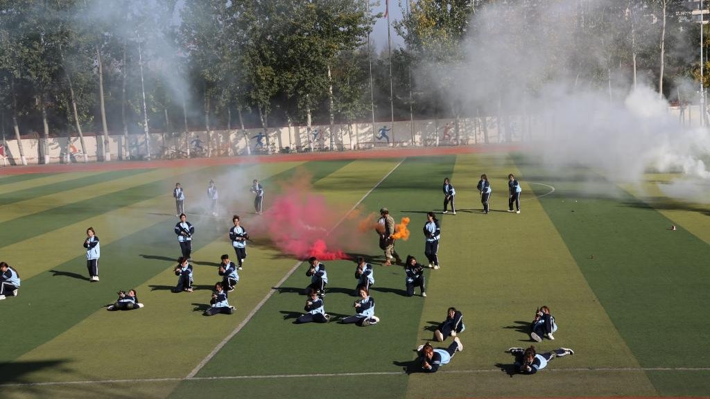 分列式结束后,军事科目汇报表演正式开始,三声三相、擒敌拳、战术……同学们动作刚劲有力、气势磅礴,彰显了财贸学子不惧困难、昂扬奋发的精神风貌。