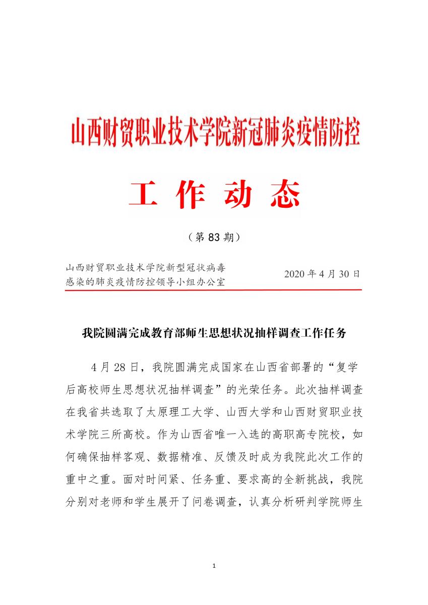 工作动态83 我院圆满完成教育部师生思想状况抽样调查工作任务
