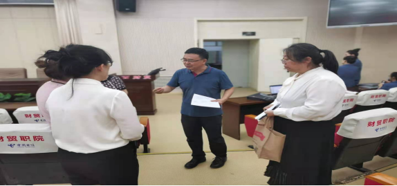 段文美院长、富伯亭副院长认真观摩了4个参赛队的汇报,并深入每个参赛团队,与参赛教师进行了当面交流,对其答辩过程中出现的亮点予以肯定,同时与参赛教师进行了深入的沟通交流,并重点指出其存在的问题和改进的建议,参赛教师深受启发,现场气氛热烈有序。