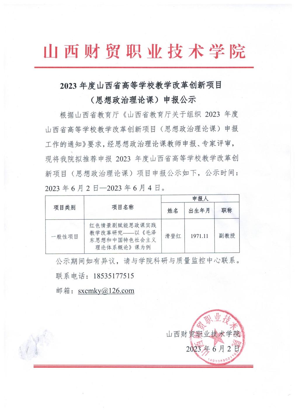 2023年度山西省高等学校教学改革创新项目(思想政治理论课)申报公示