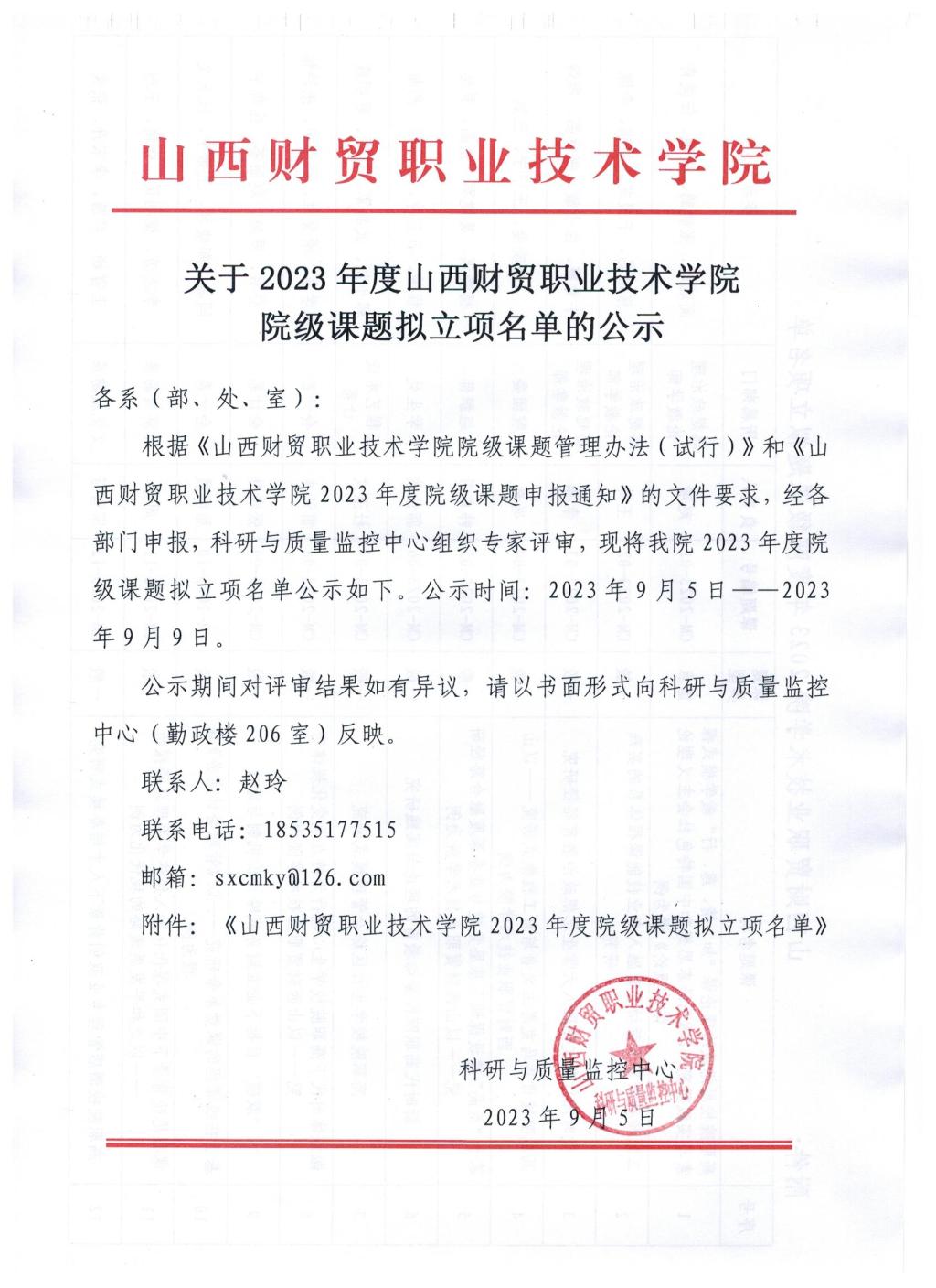 附件: 山西财贸职业技术学院2023年度院级课题拟立项名单