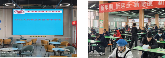 为深入落实《中华人民共和国食品安全法》《学校食品安全与营养健康管理规定》等法律法规要求,进一步强化餐厅从业人员的食品安全责任意识,规范操作行为,有效防范校园食品安全风险,切实保障全院师生的饮食健康与生命安全,2025年12月4日下午,我院后勤处膳食科精心组织开展食品安全操作知识考核。本次考核覆盖食品安全总监、食品安全员及全体餐厅从业人员,采用“理论+实操”双轨并行的考核模式。由分管后勤院领导牵头组建考核组,膳食科与餐饮公司协同落实,全程严守考核标准,确保考核过程规范。