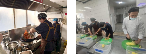 实操考核环节则亮点频现,充分展现了餐厅从业人员扎实的业务功底。颠勺考核现场,选手们精准掌控火候大小与翻炒幅度,确保菜品受热均匀、色泽鲜亮,全程无洒落现象;刀功考核中,大家手持刀具将各类食材加工成规格统一的丝、丁、块,展现了扎实的基本功。