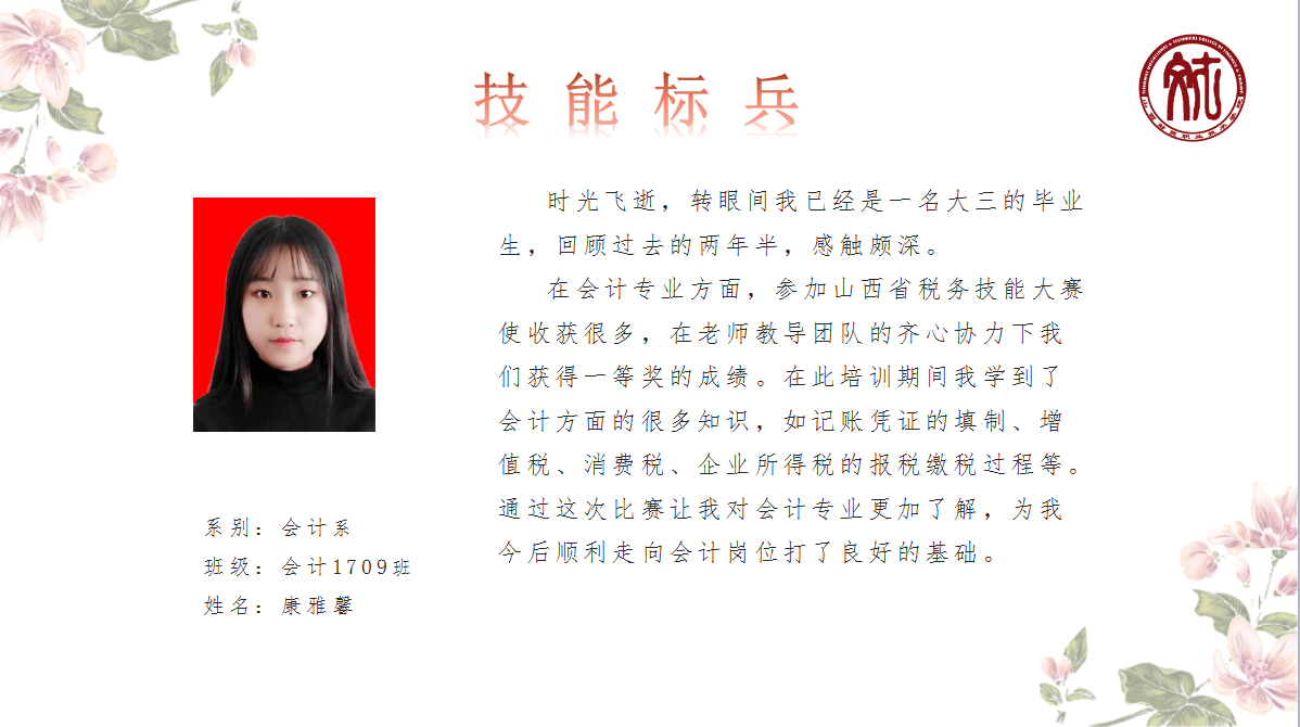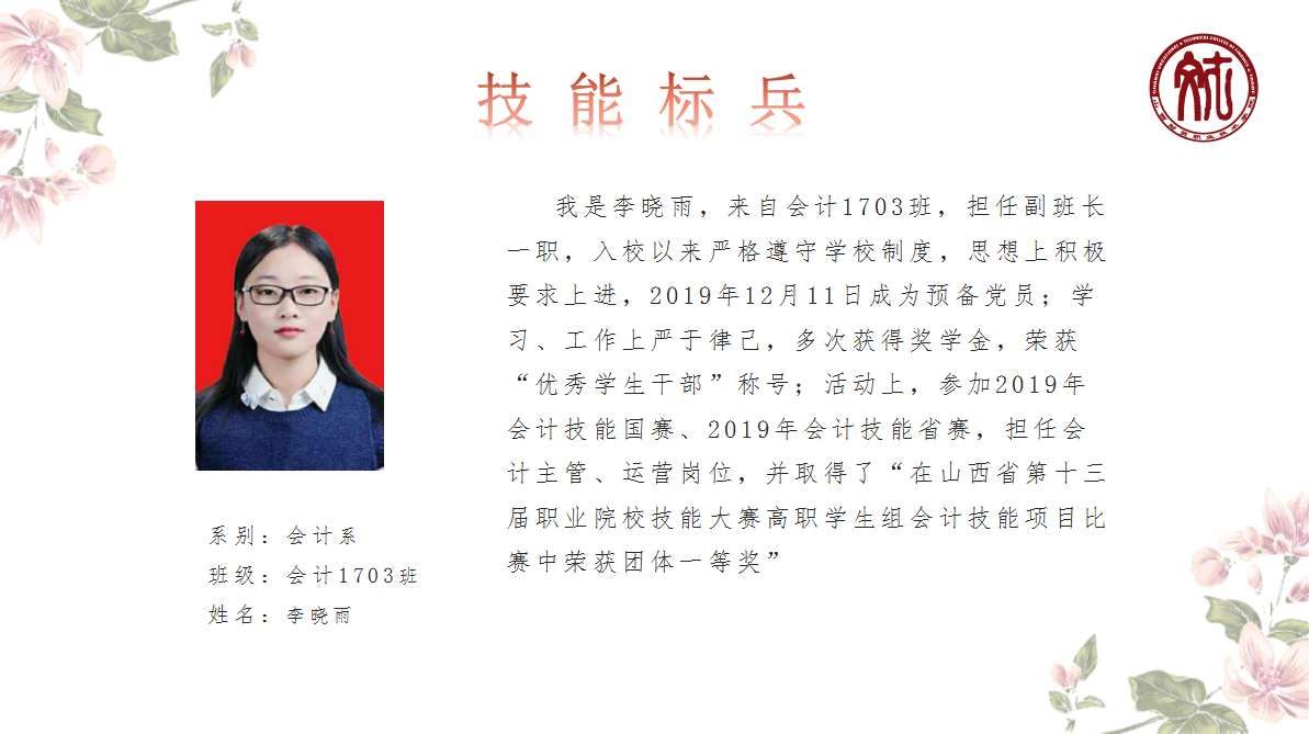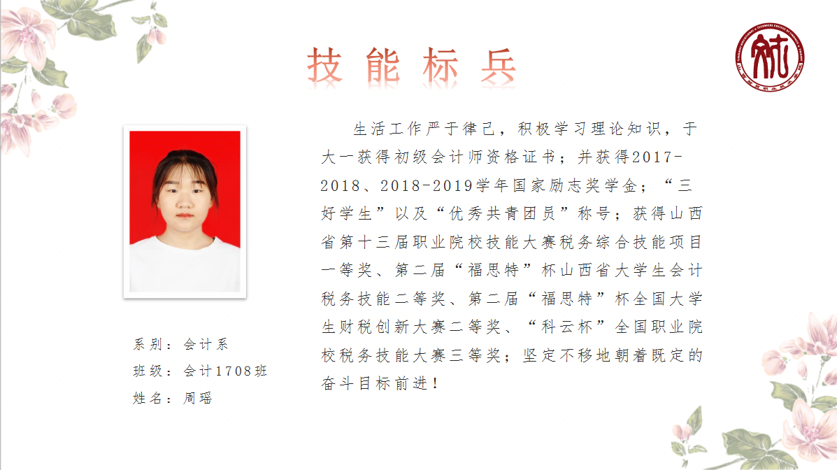 山西财贸职业技术学院2019年度部分“技能标兵”事迹展示