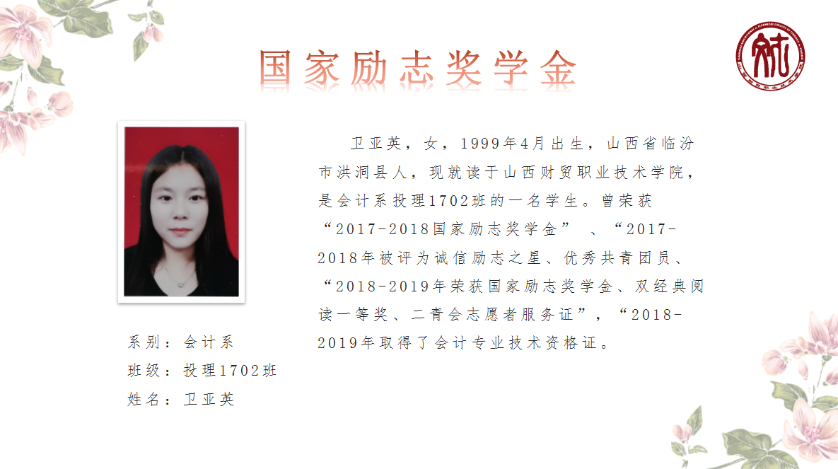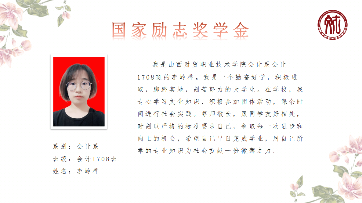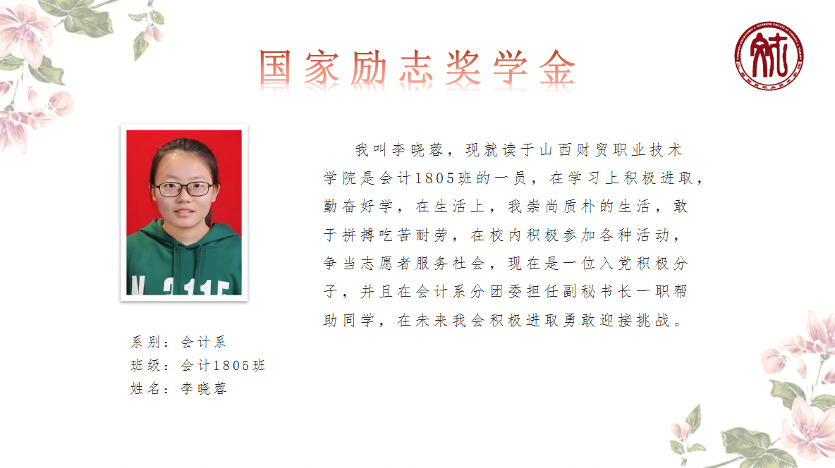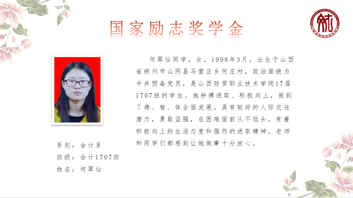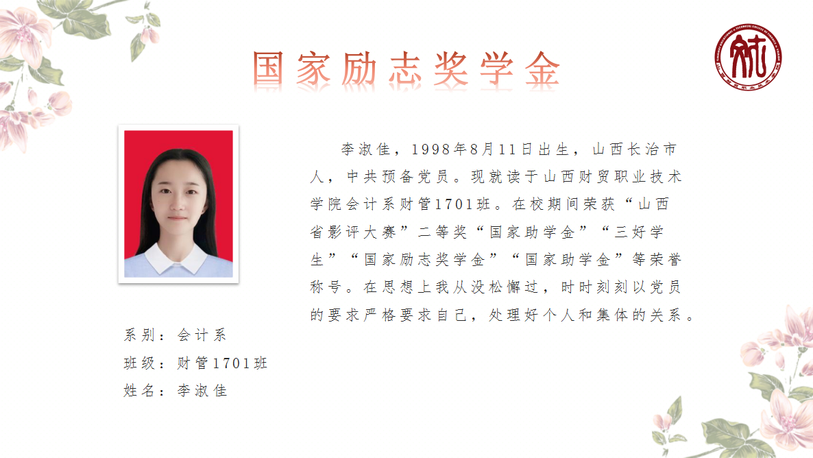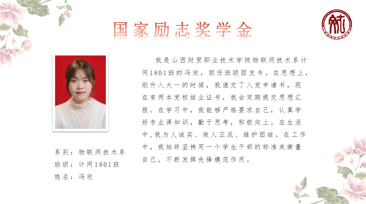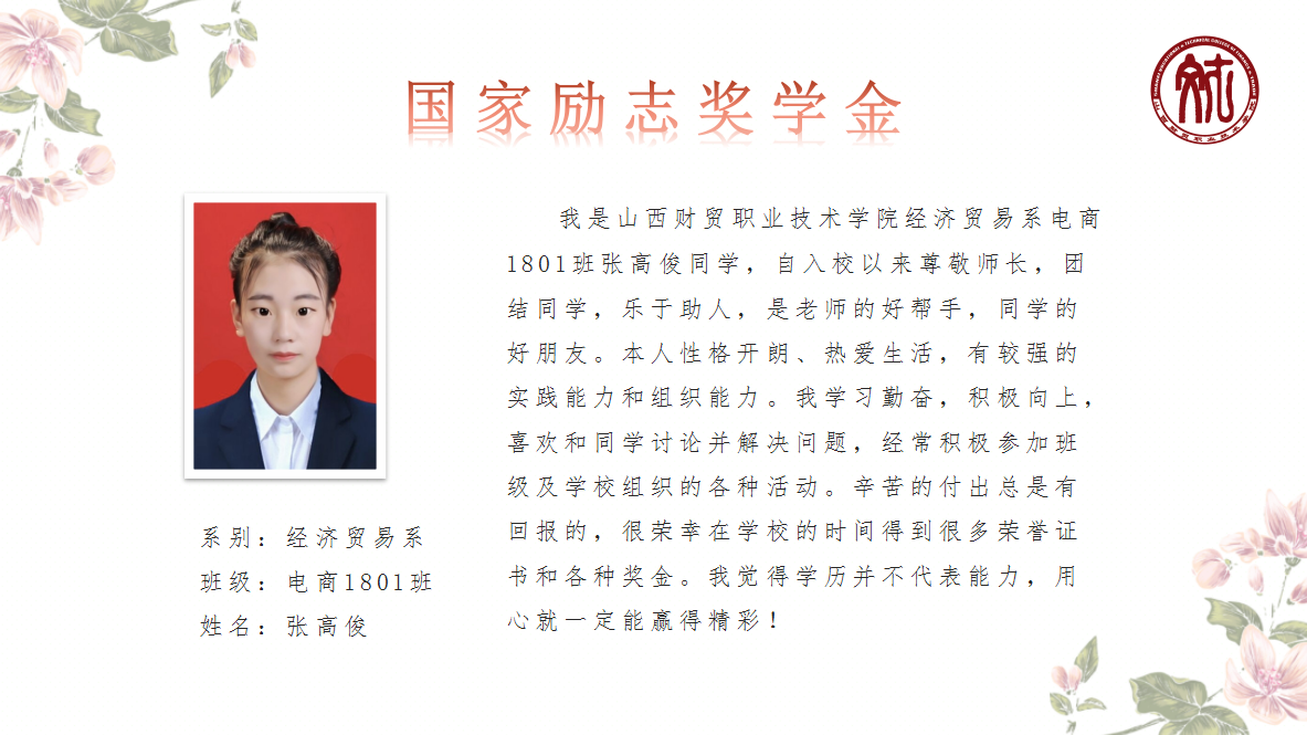 山西财贸职业技术学院2019年度部分“国家励志奖学金”获得者事迹展示