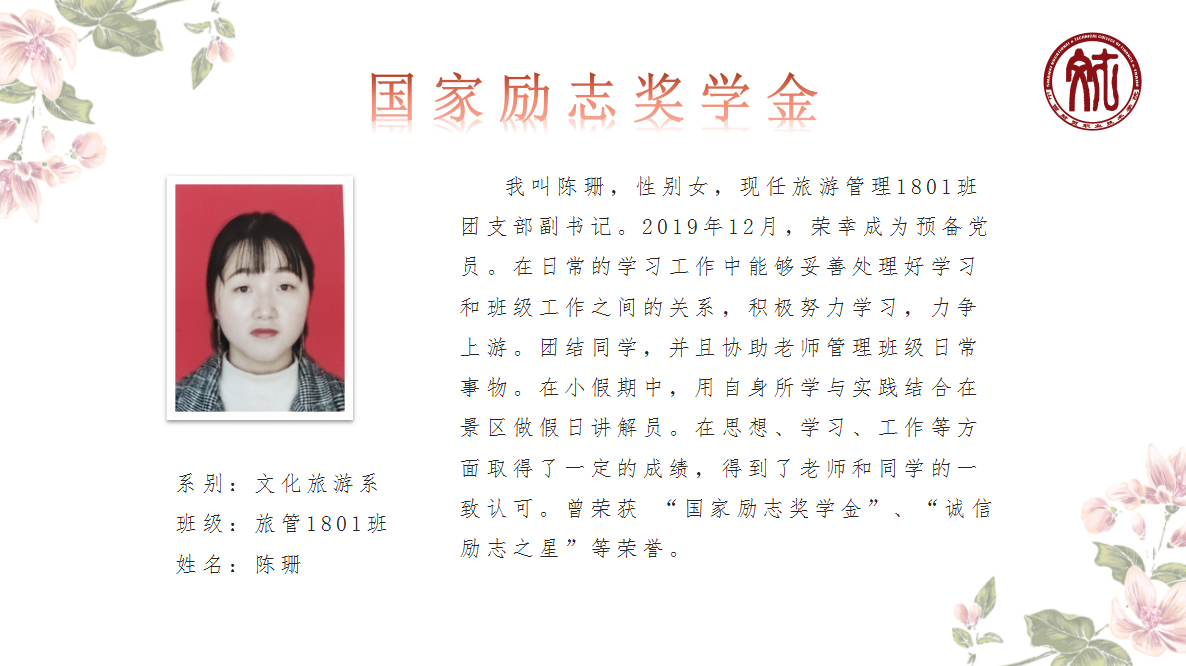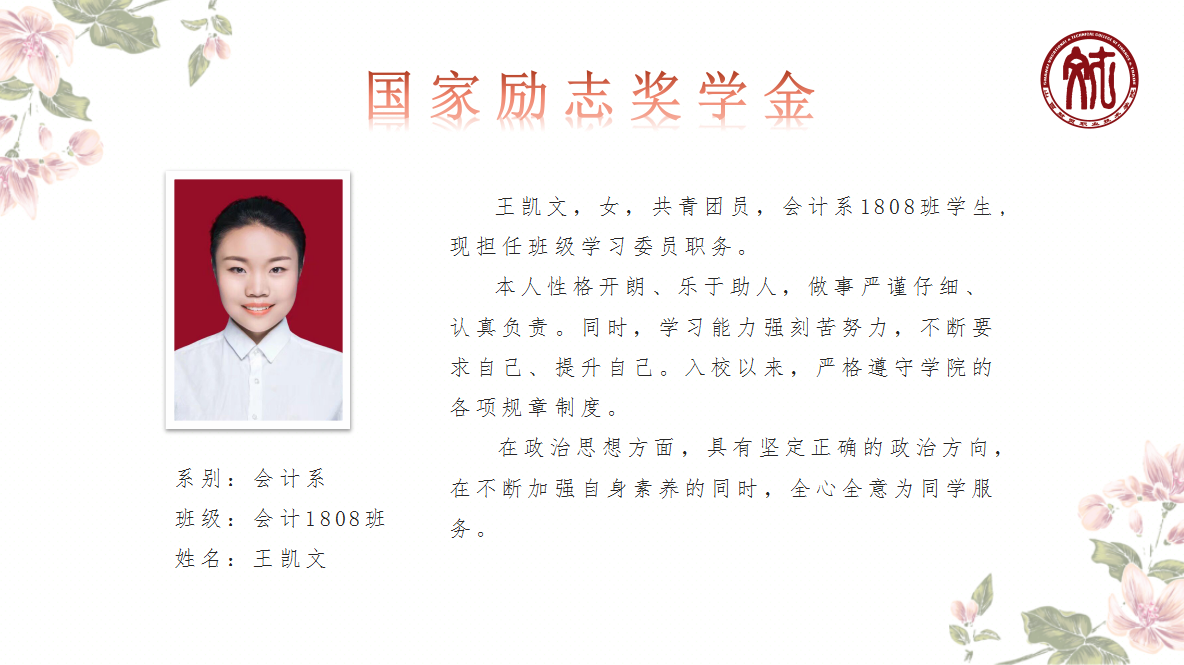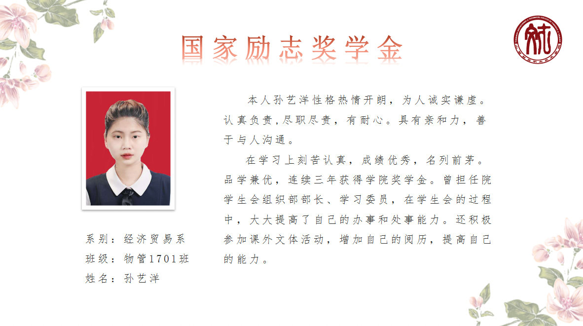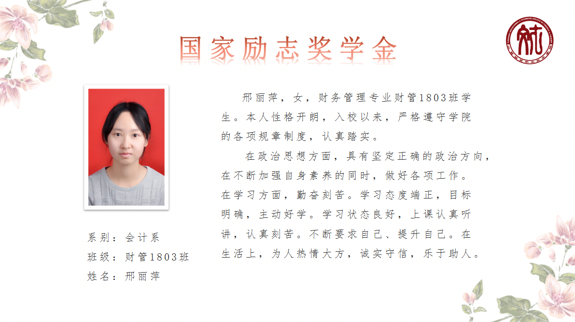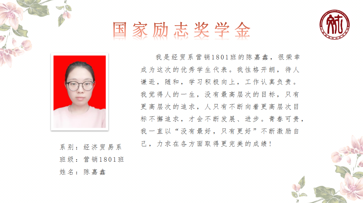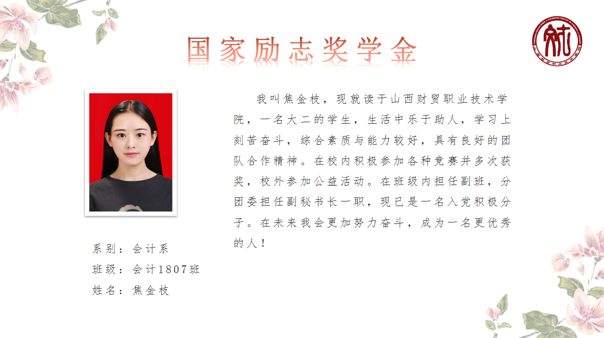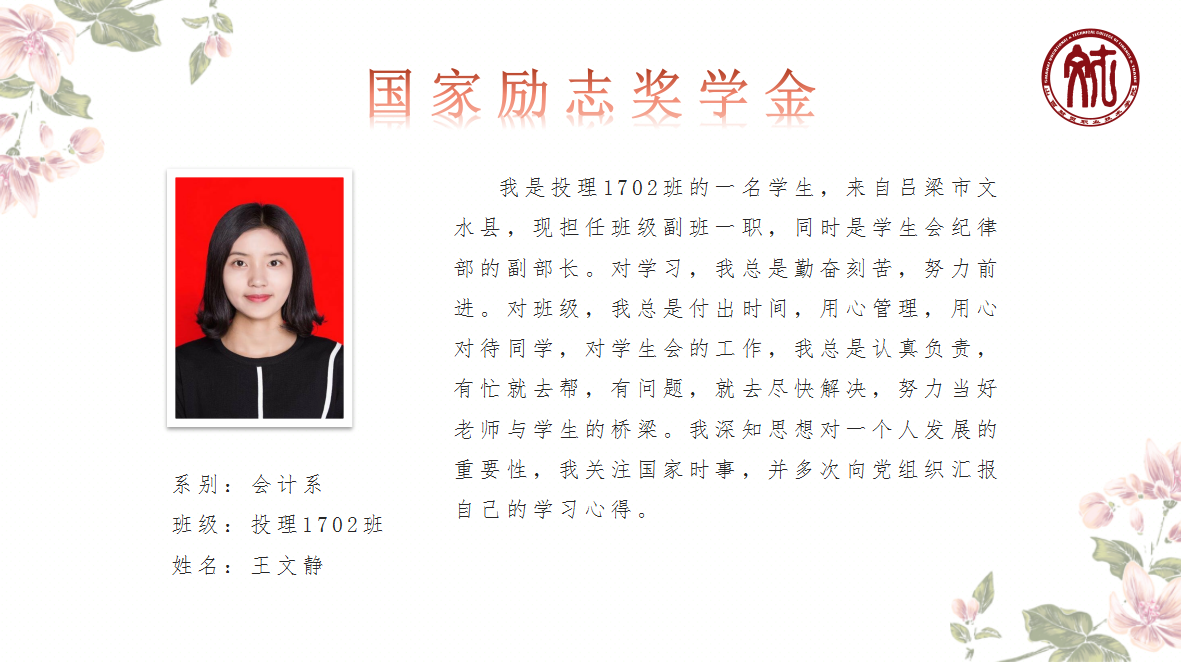 山西财贸职业技术学院2019年度部分“国家励志奖学金”获得者事迹展示