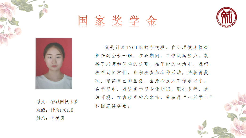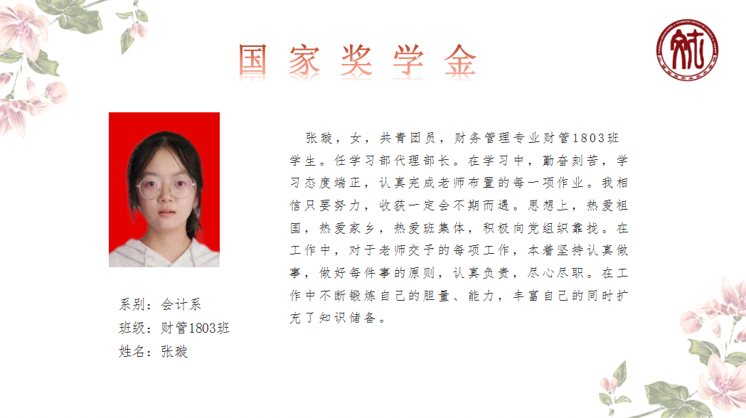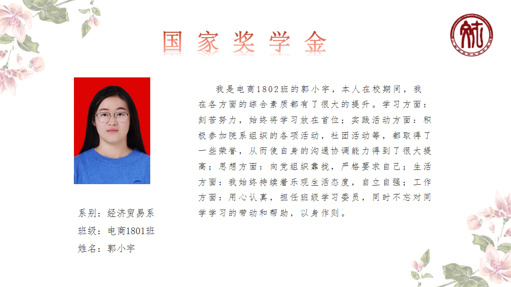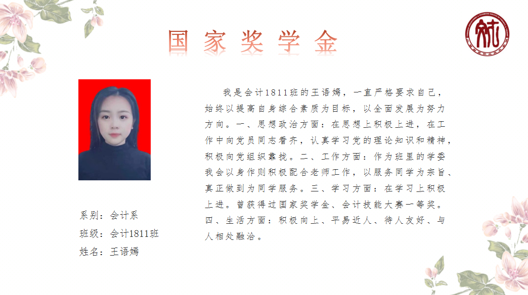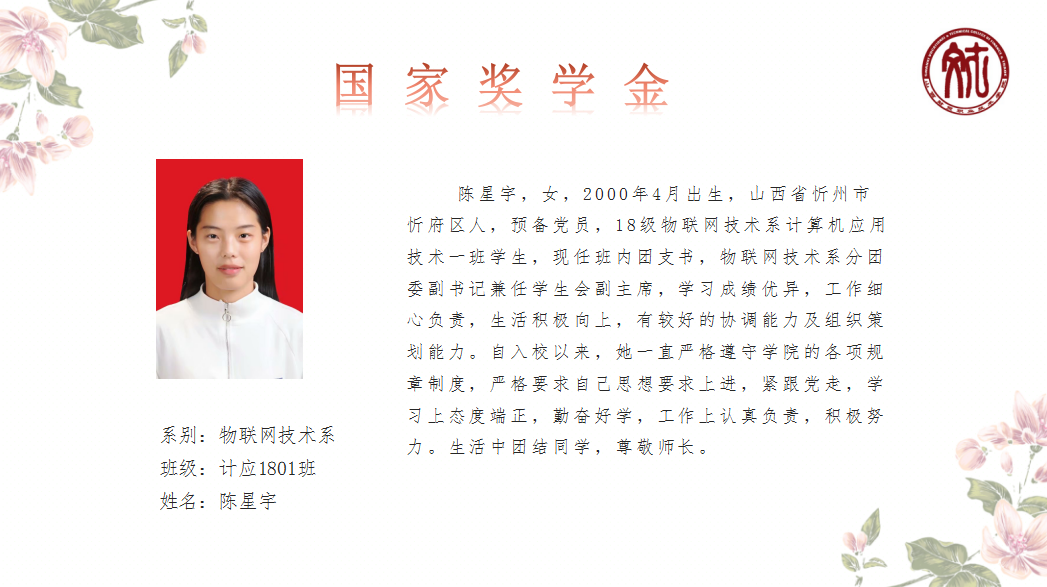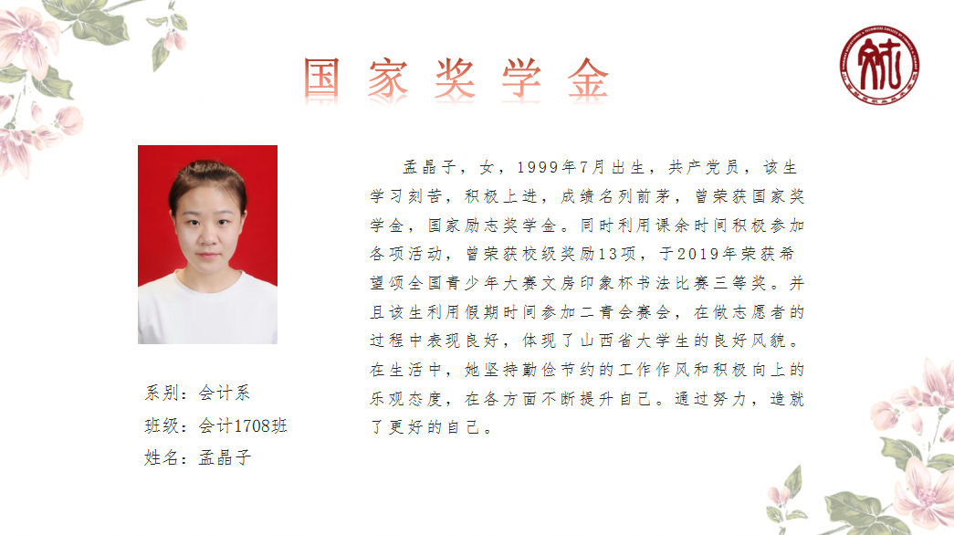 山西财贸职业技术学院2019年度“国家奖学金”获奖者事迹展示