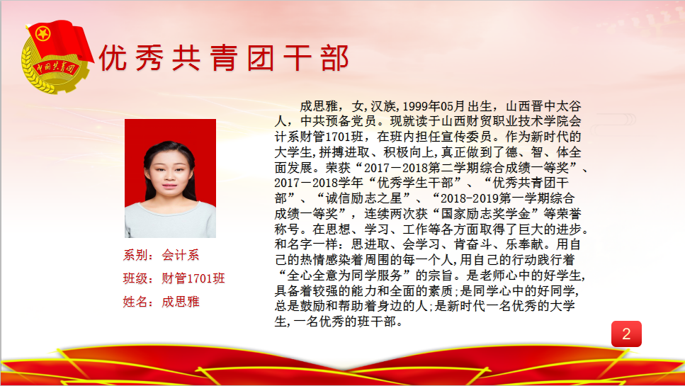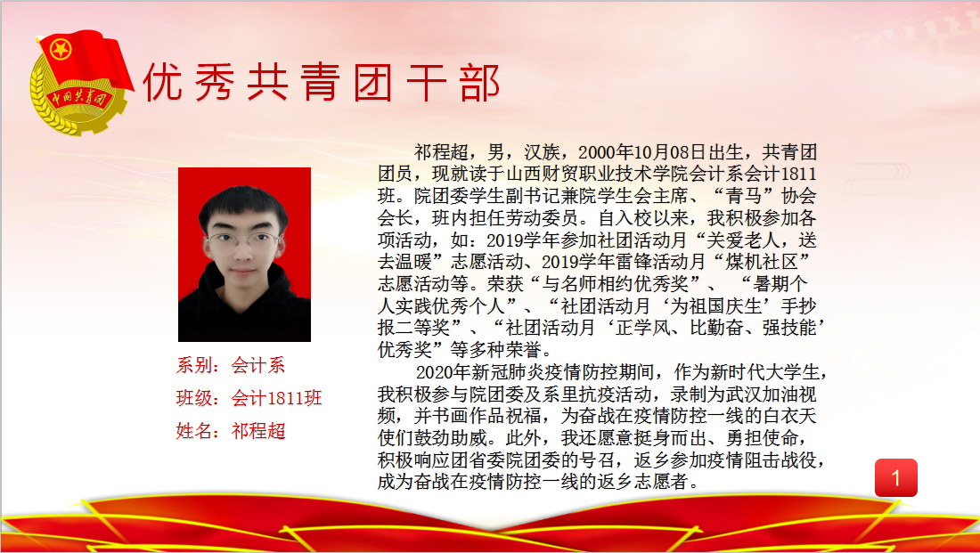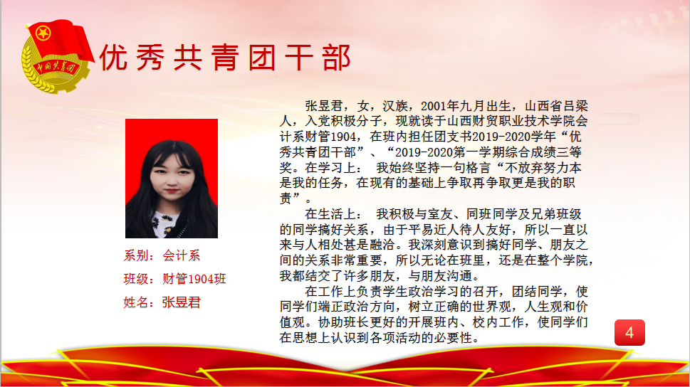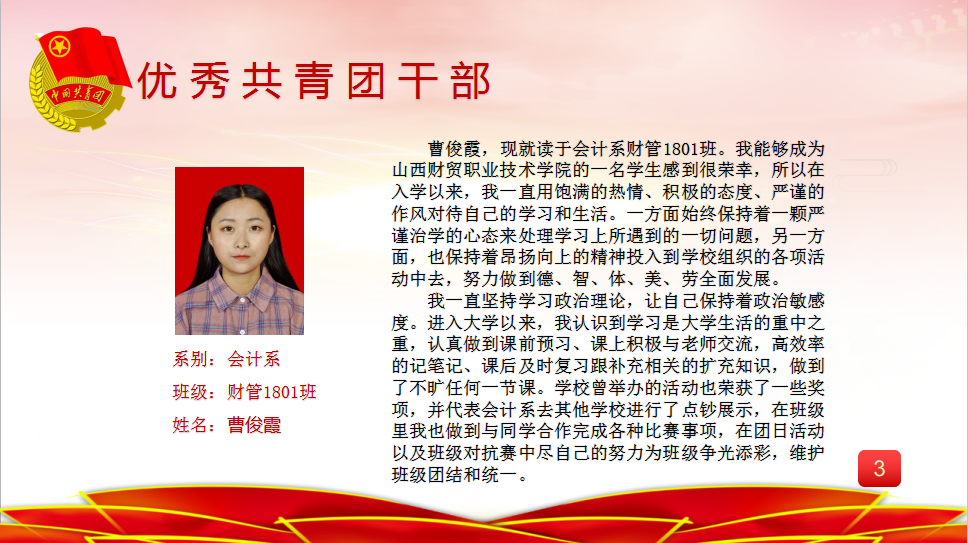 山西财贸职业技术学院2019度部分“优秀共青团干部”事迹展示