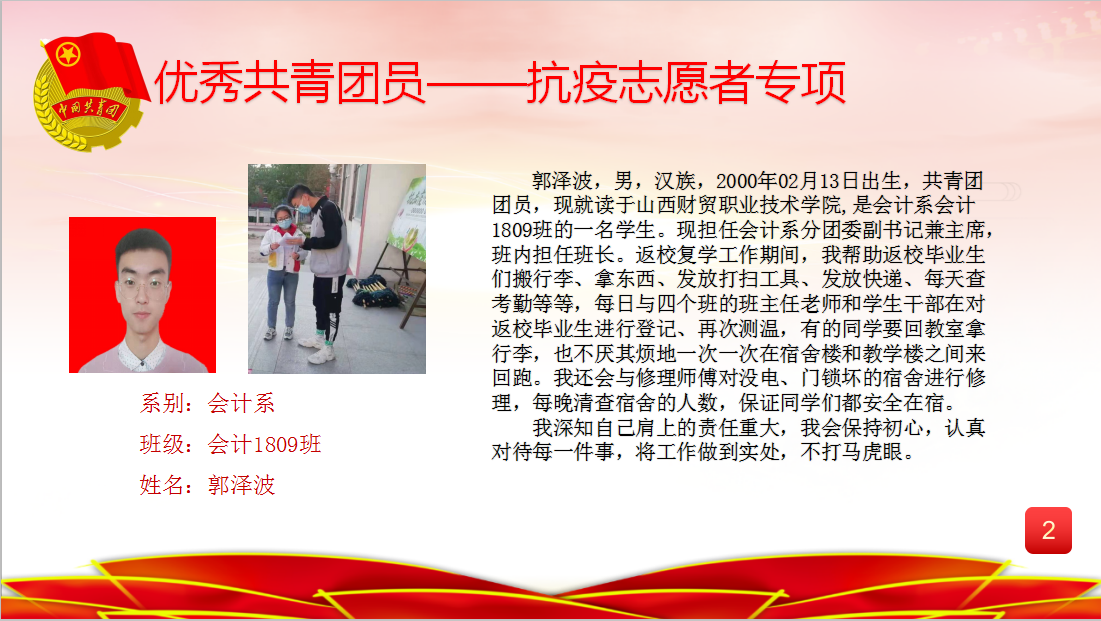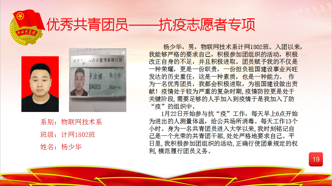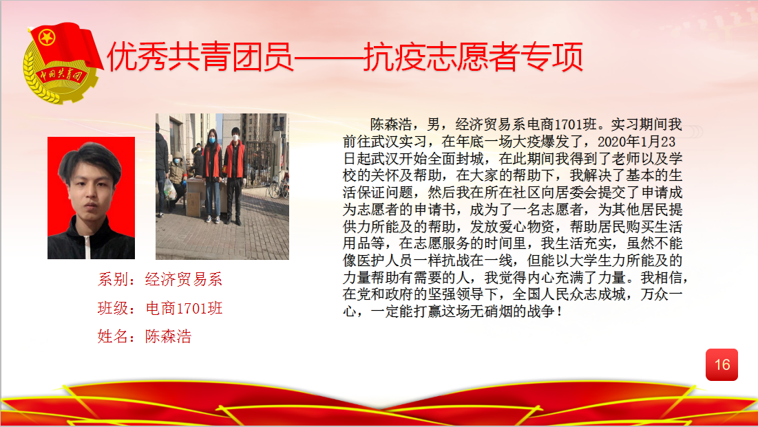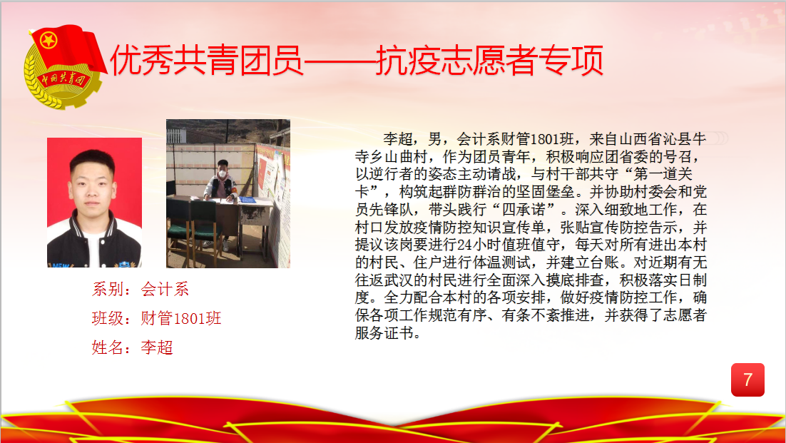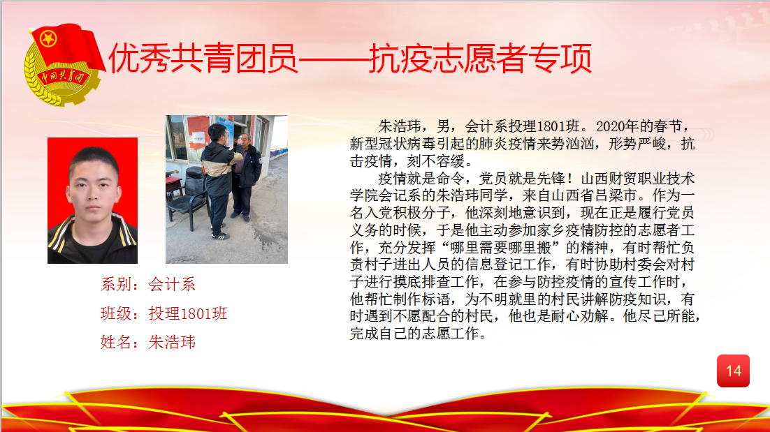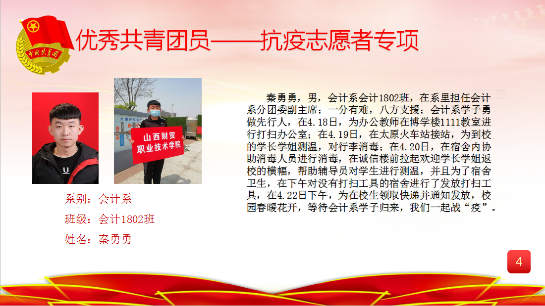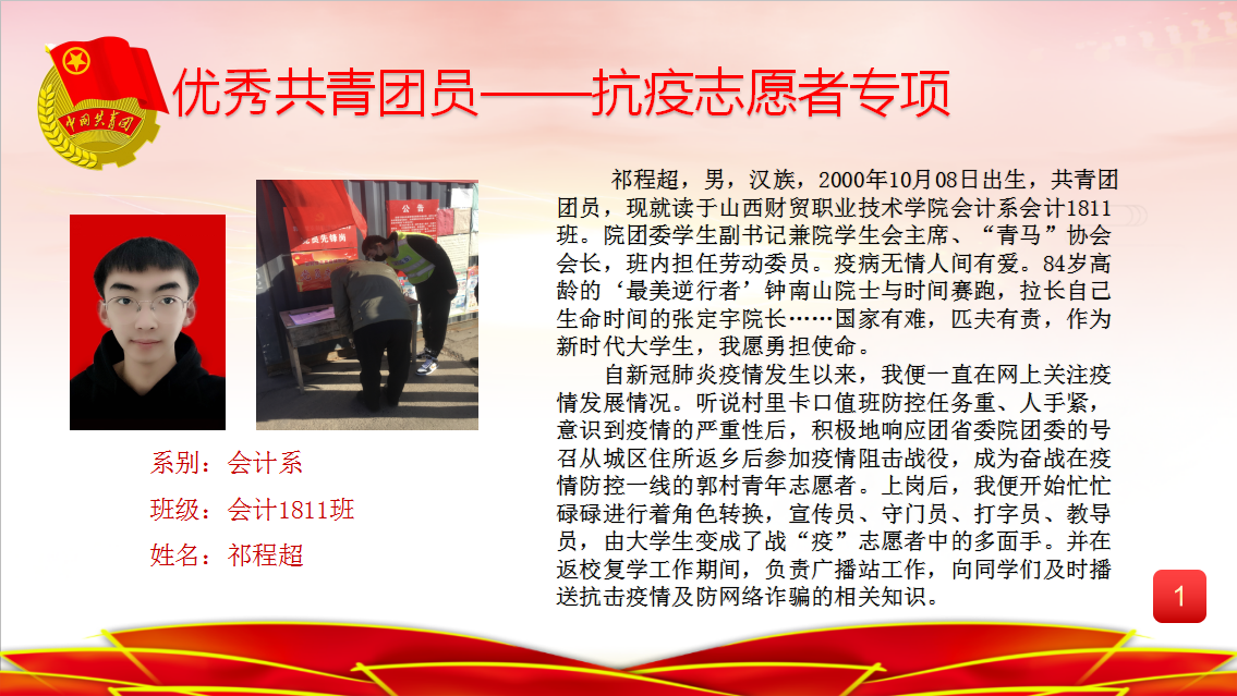 山西财贸职业技术学院2019年度“优秀共青团员—抗疫志愿者专项”事迹展示