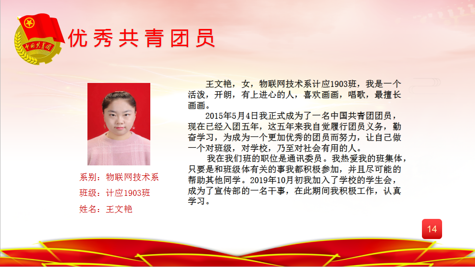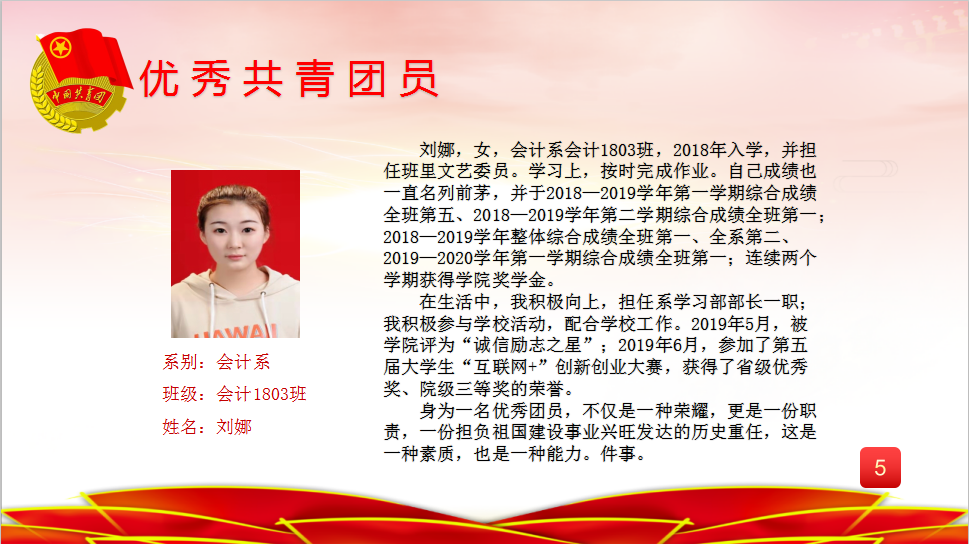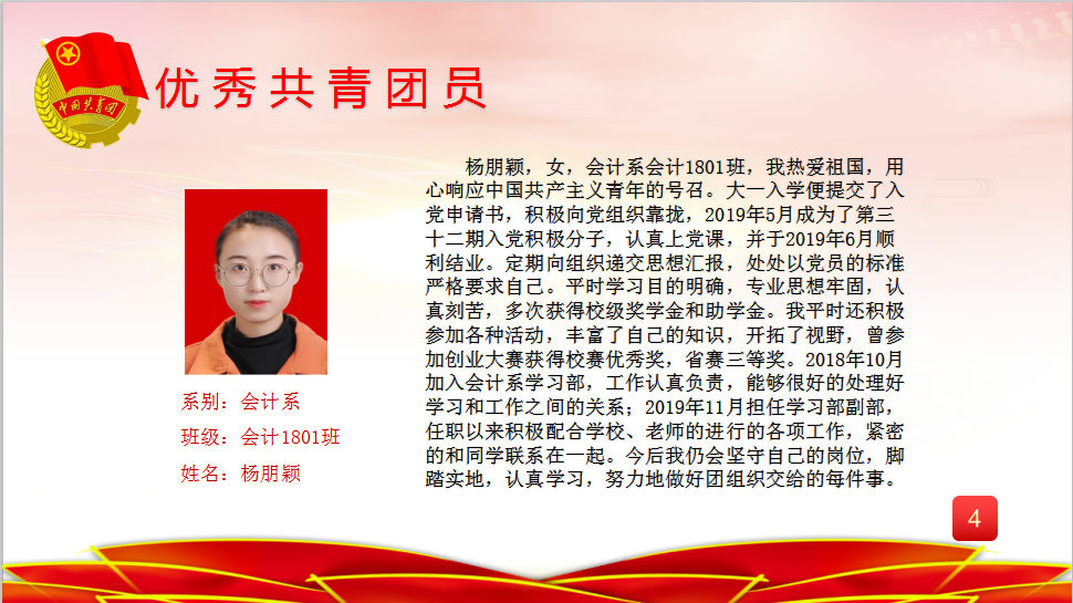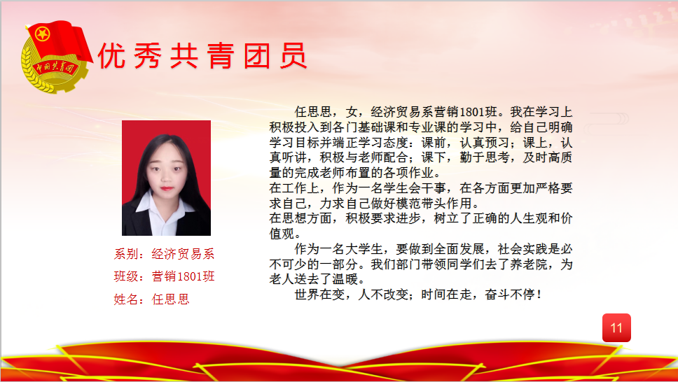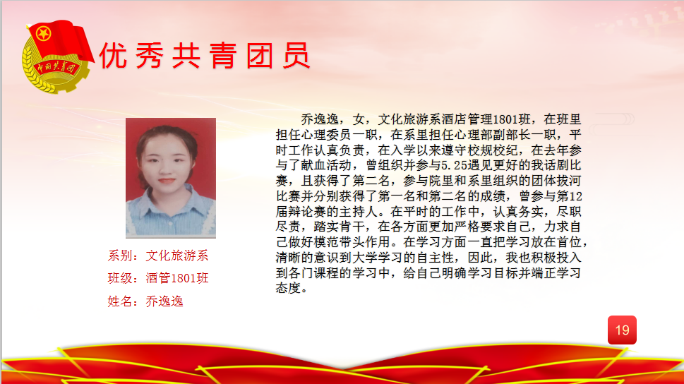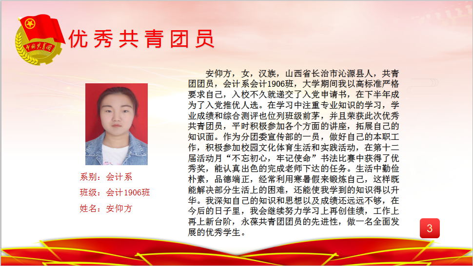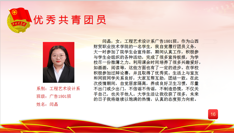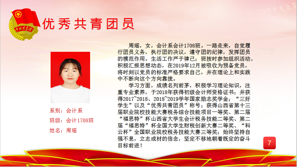 山西财贸职业技术学院2019年度部分“优秀共青团员”事迹展示