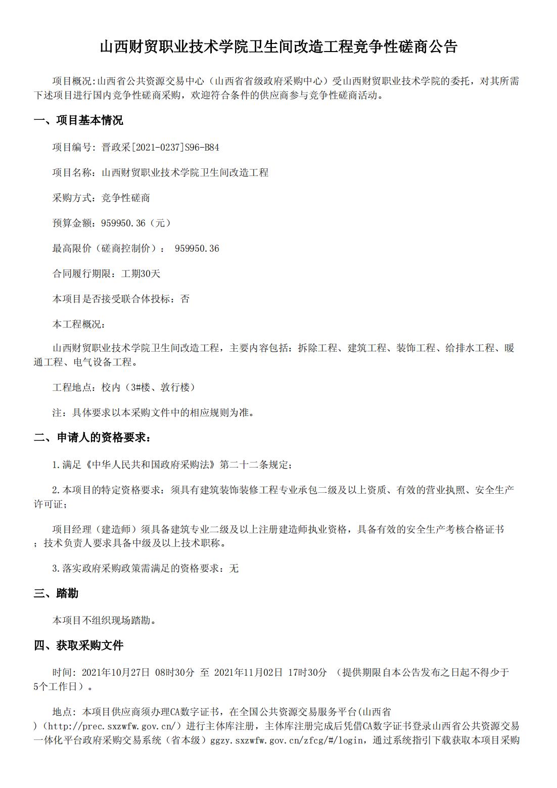 山西财贸职业技术学院卫生间改造工程竞争性磋商公告