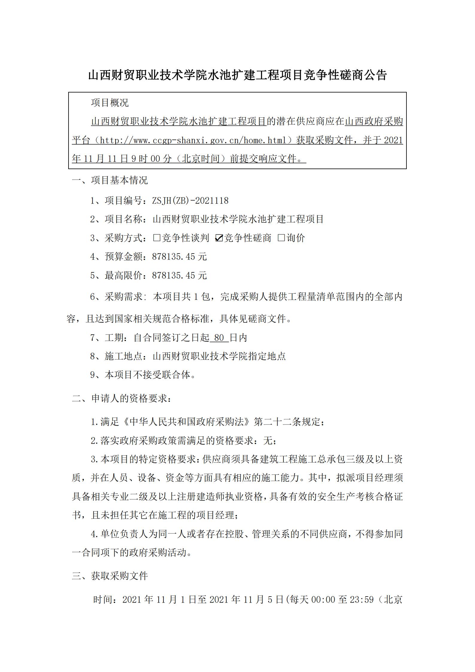 山西财贸职业技术学院水池扩建工程项目竞争性磋商公告