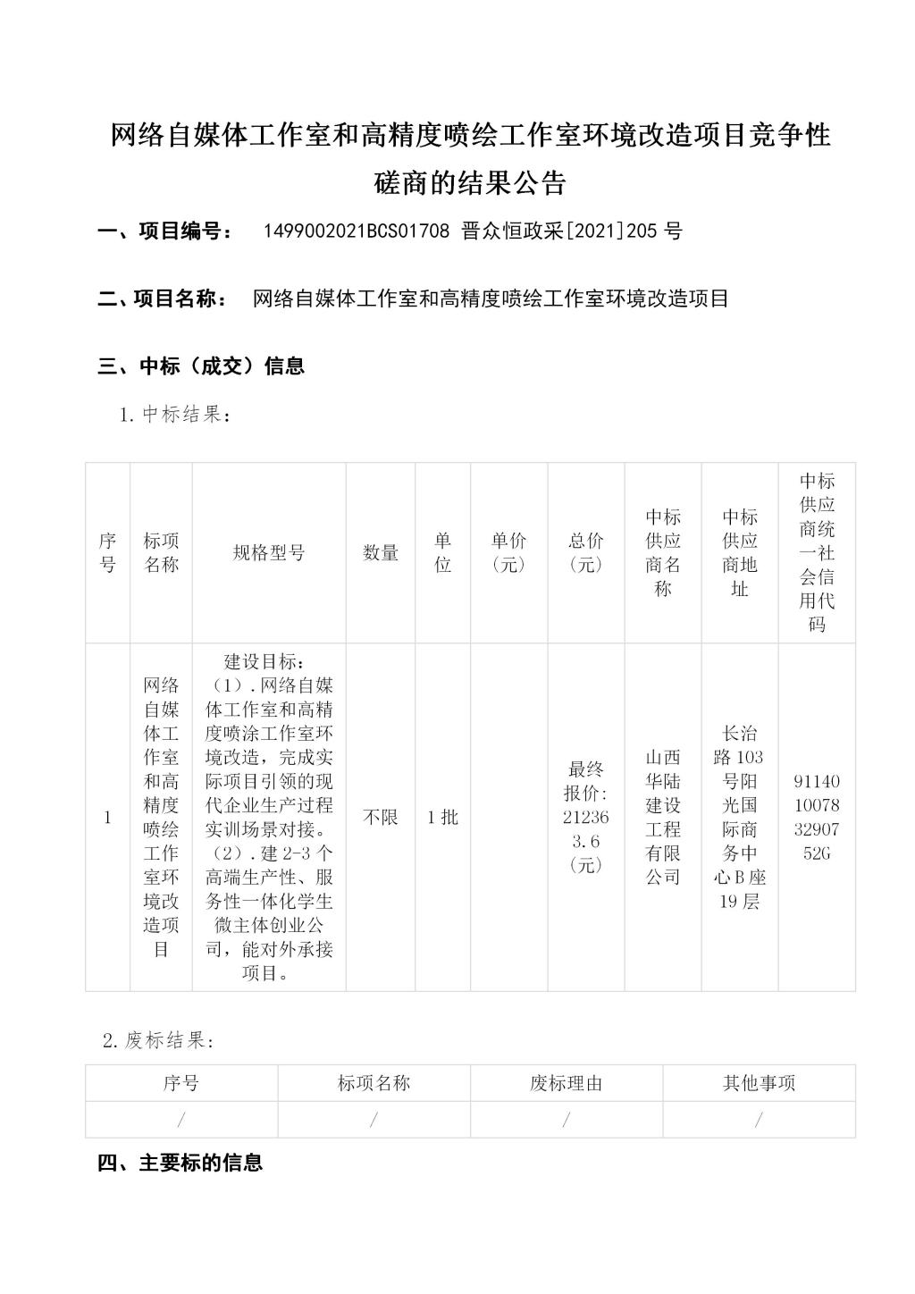 网络自媒体工作室和高精度喷绘工作室环境改造项目竞争性磋商的结果公告