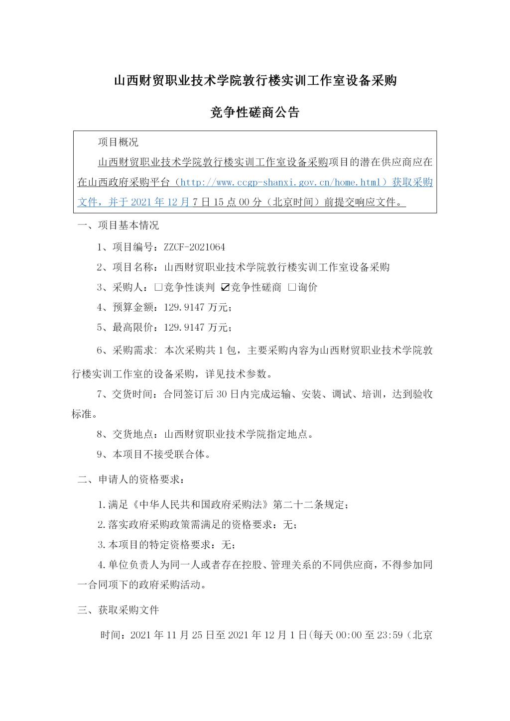 山西财贸职业技术学院敦行楼实训工作室设备采购竞争性磋商公告