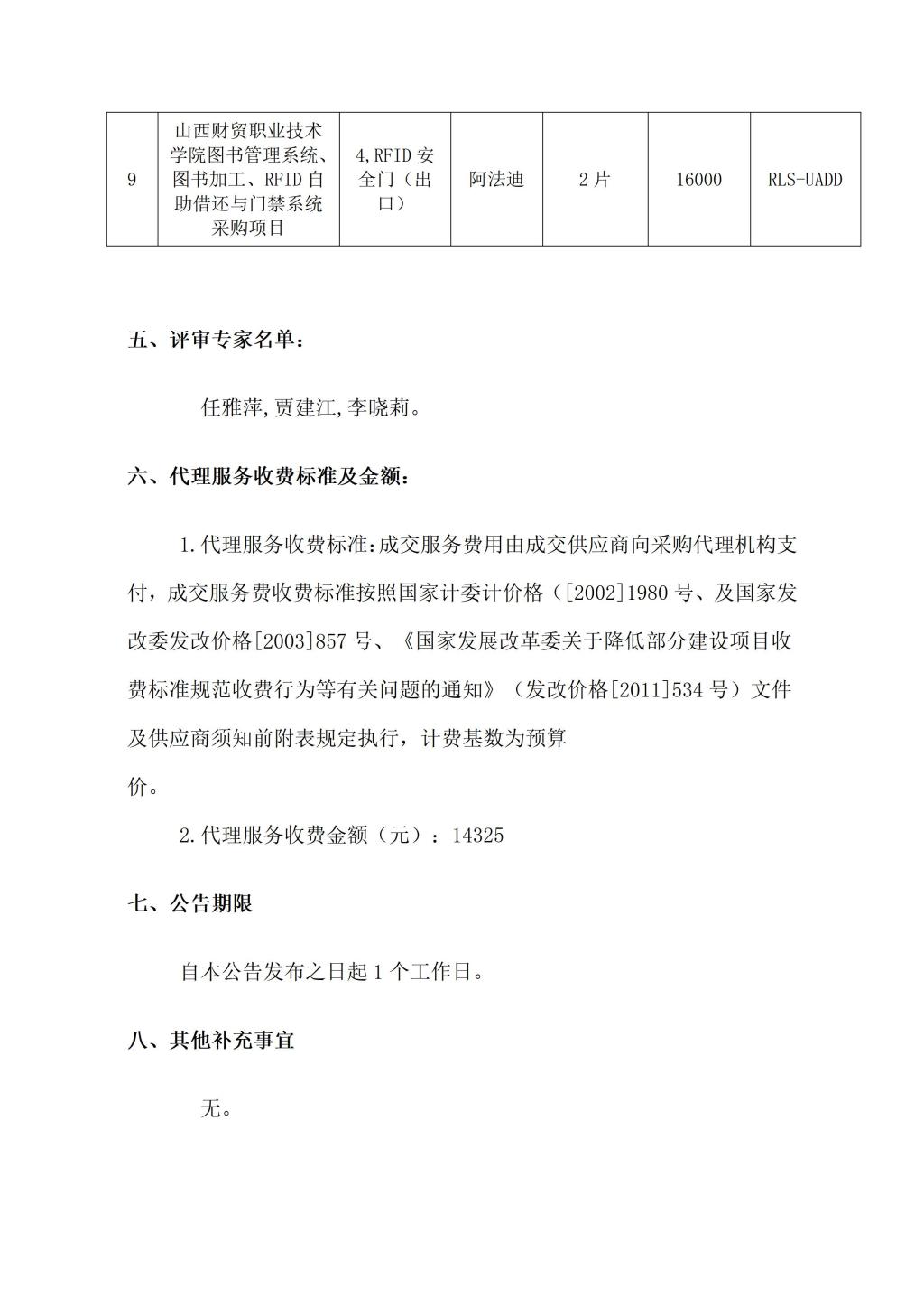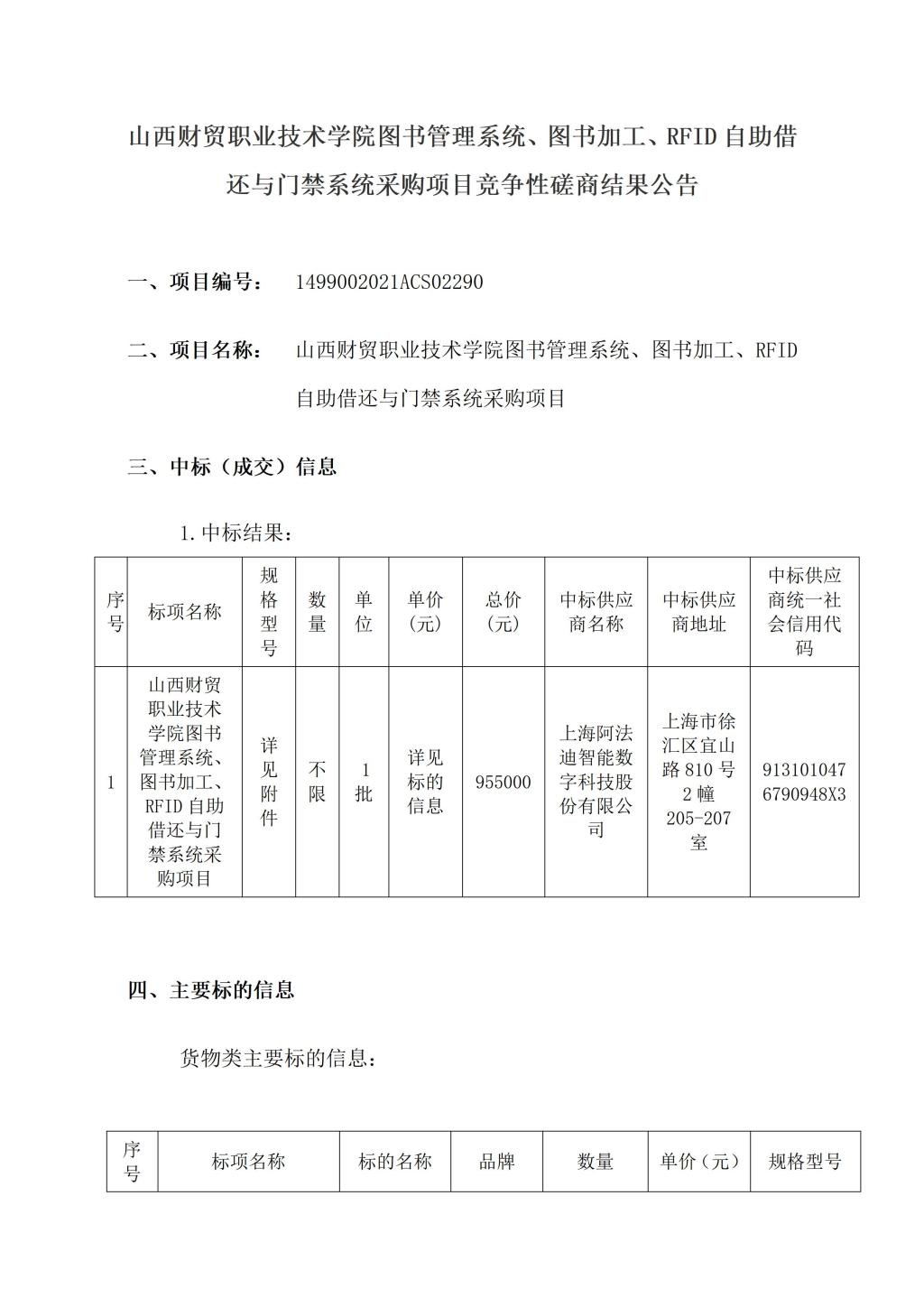 山西财贸职业技术学院图书管理系统、图书加工、RFID自助借还与门禁系统采购项目竞争性磋商结果公告