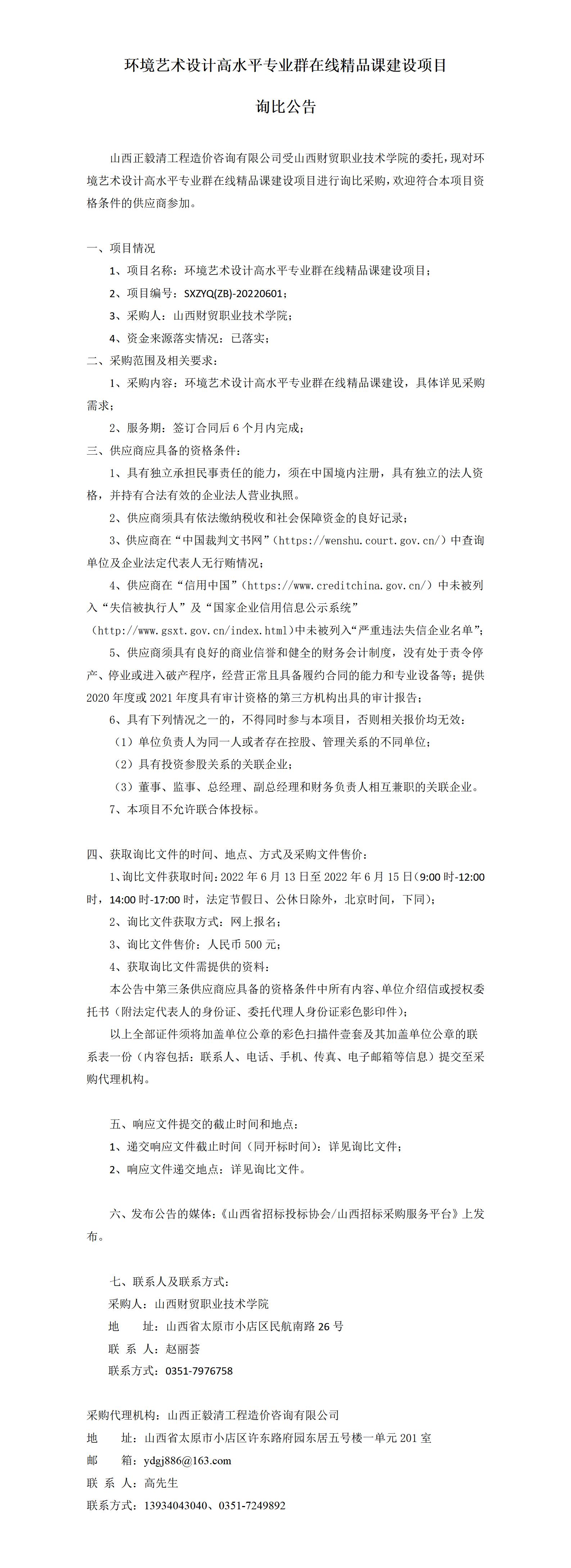 环境艺术设计高水平专业群在线精品课建设项目询比公告