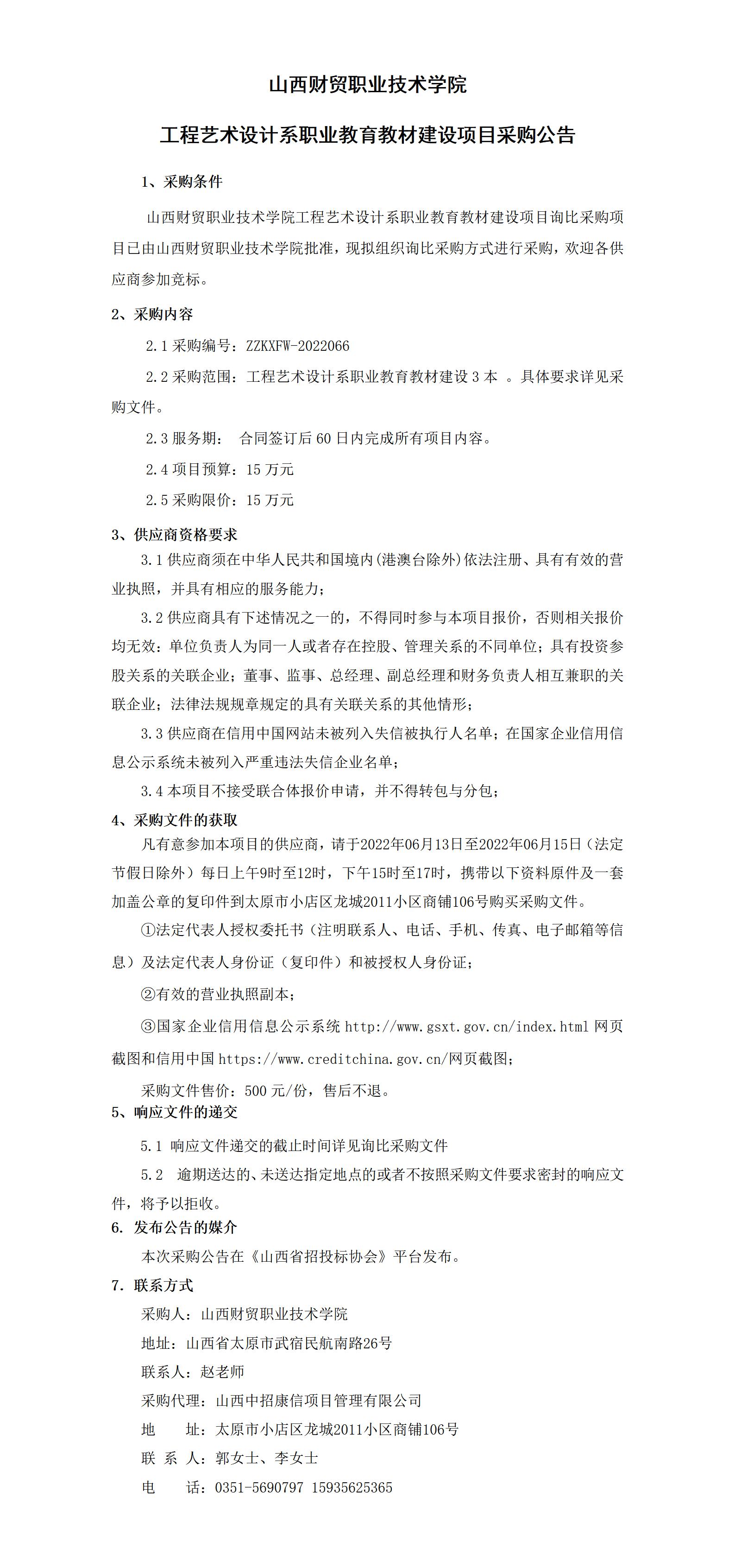 山西财贸职业技术学院工程艺术设计系职业教育教材建设项目采购公告