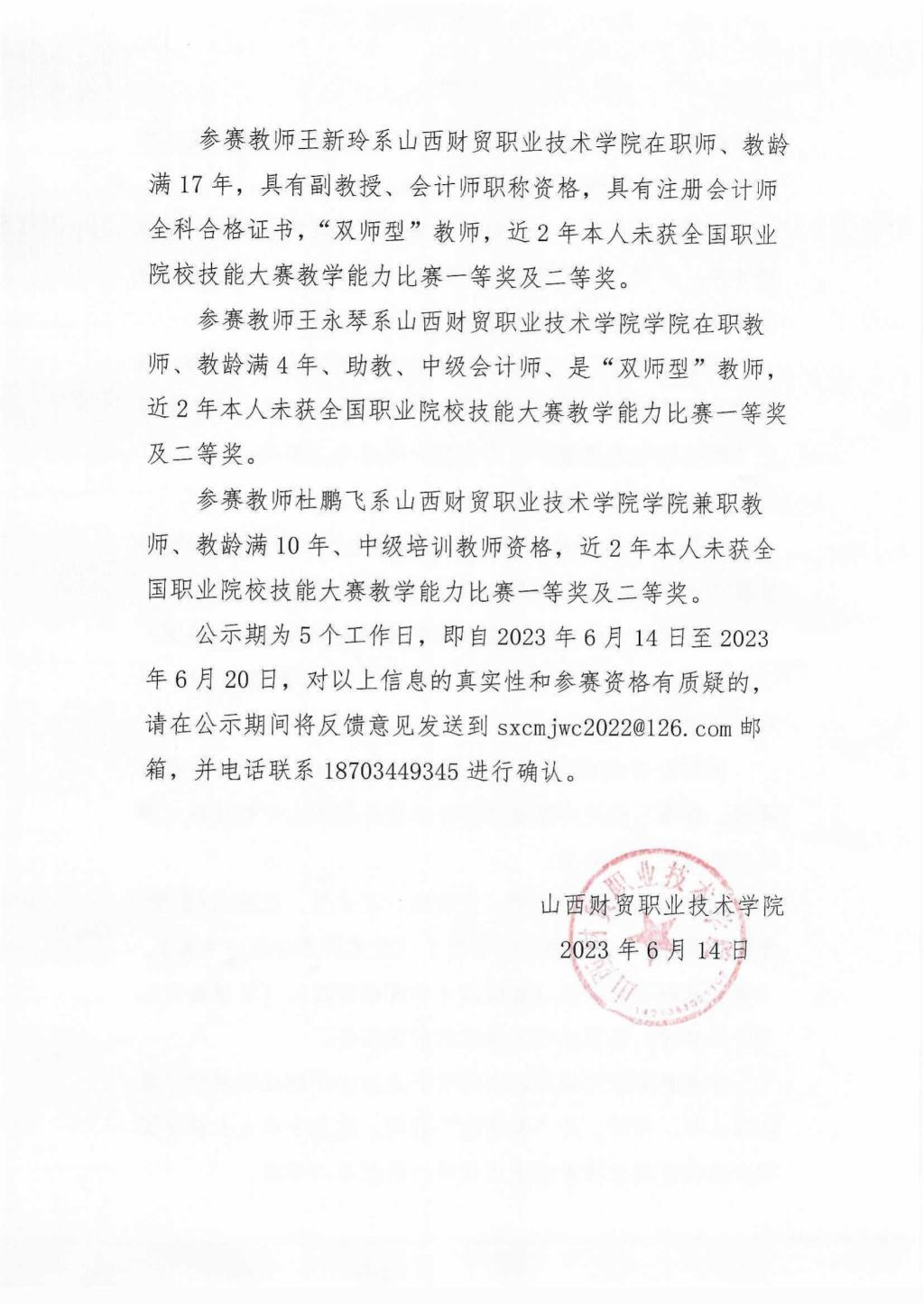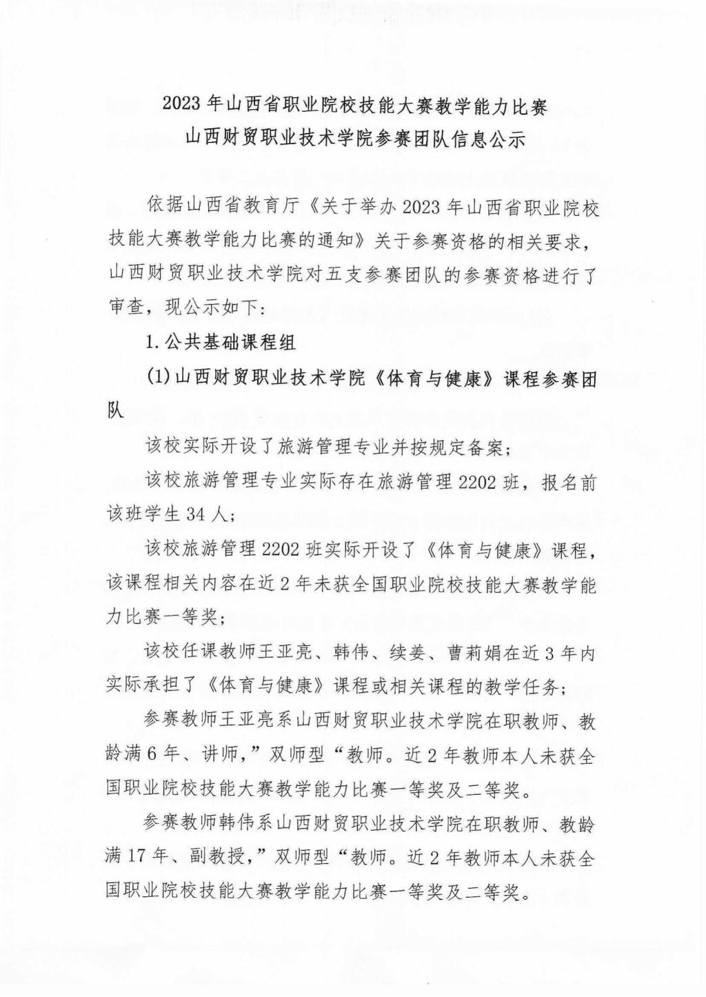 2023年山西省职业院校技能大赛教学能力比赛山西财贸职业技术学院参赛团队信息公示
