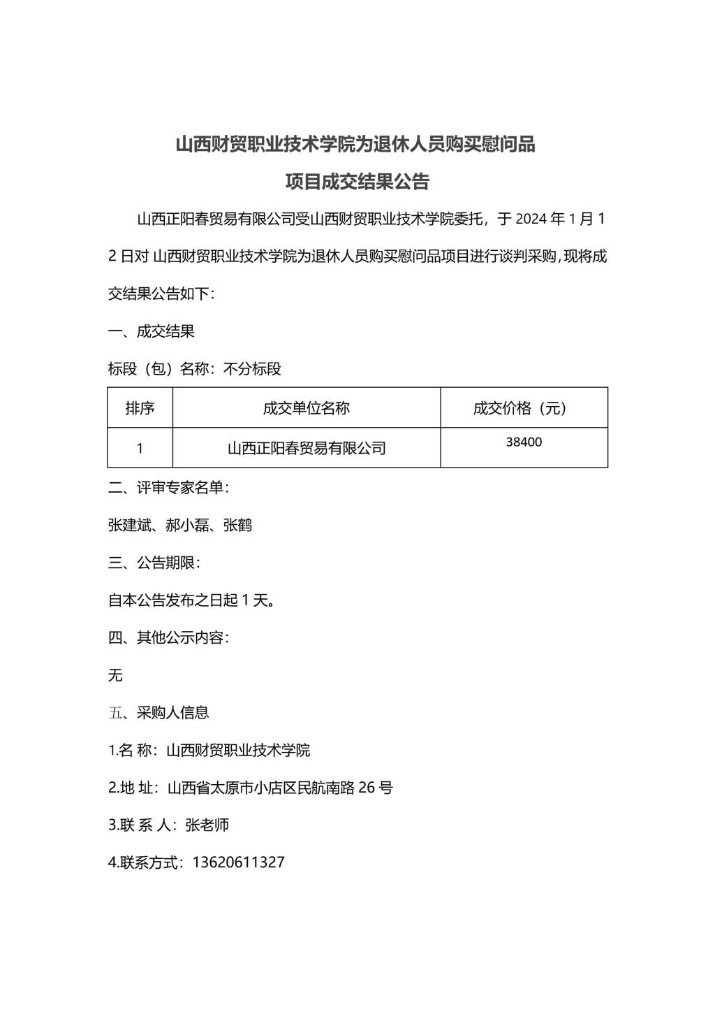 山西财贸职业技术学院为退休人员购买慰问品项目成交结果公告