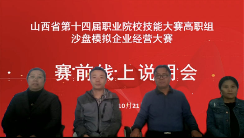 金秋十月,2020年山西省第十四届职业院校技能大赛(高职组)即将拉开帷幕。为确保比赛顺利进行,作为沙盘模拟企业经营赛项承办方,根据大赛组委会的部署和要求,我院于10月21日下午召开了线上赛项说明会。学院会计系主任王振中、副主任杨卫、山西农业大学信息学院淬炼商学院副院长许德芳、新道科技股份有限公司经理郭慧杰及17支参赛团队代表参加了会议。