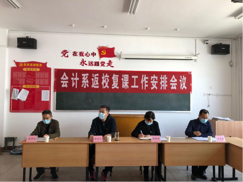 最后,徐旭宁副书记进行了总结讲话。他高度肯定了会计系的返校复课工作安排,并重点强调,一是返校复课工作是当前全校最重要的工作,会计系是本次返校复课工作的先锋先头部队,承担着先行先试的重要使命;二是要将政治站位落实到具体的行动当中,分清事务主次,树立大局观念,参会的各位老师任重而道远,希望大家能够不忘初心,以学生为中心,克服当前暂时的困难,主动承担起自身的职责;三是此次返校复课工作模式是一种前所未有的工作模式,也是一次前所未有的大考,在本次返校复课工作中会计系一定要做出亮点,写出属于自己的“战疫日记”,争取为全院及省内其他院校的进一步返校复课工作做出榜样。