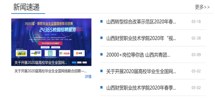 3. 开拓就业市场,稳步开展就业工作。学院主动出击,与用人单位积极联系,为单位和毕业生架起招才选才与线上就业的有效桥梁。从2月28日起,每周在学院网站更新发布一期《山西财贸职业技术学院招聘信息速递》,及时为毕业生提供就业招聘信息,截止目前已经发布五期就业新闻速递,连同在就业信息网和就业服务工作群发布的招聘单位信息,共发布240余家单位的招聘信息,提供就业岗位8500余个。