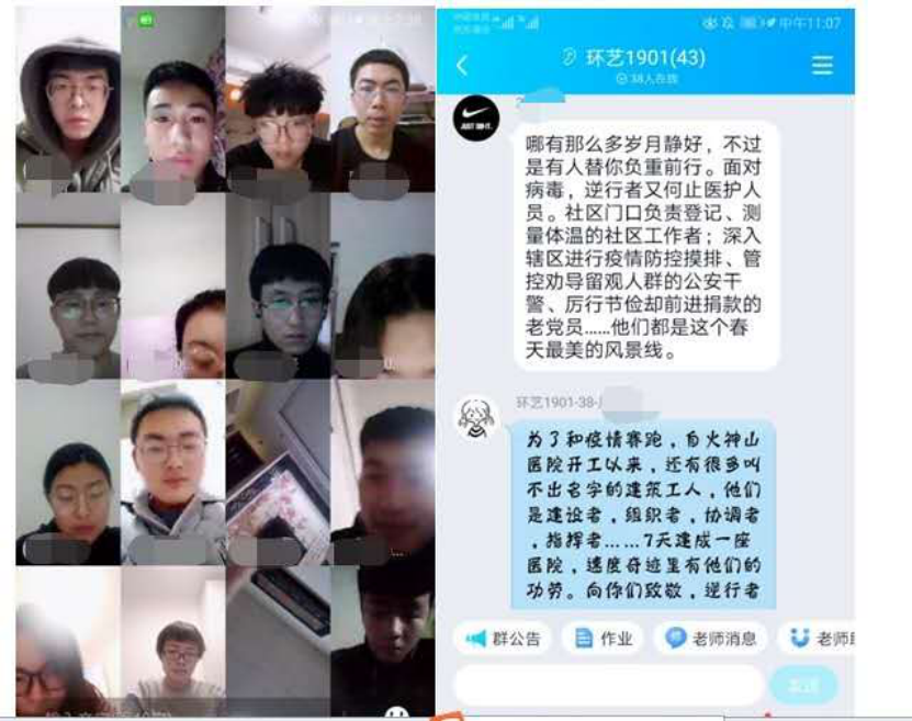 为深入学习贯彻习近平总书记重要指示精神,进一步强化思想教育引导,落实立德树人根本任务,2月24—29日,我院各班辅导员(班主任)利用钉钉、QQ群、微信群等网络平台,以疫情防控期间防控知识宣传、爱国教育、法制教育及学习安排等为主要内容,分别召开了网络视频班会。