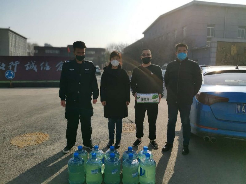 太原康佳餐饮管理有限公司向学院捐赠了10桶160斤84消毒液、片济消毒剂一箱1200片;