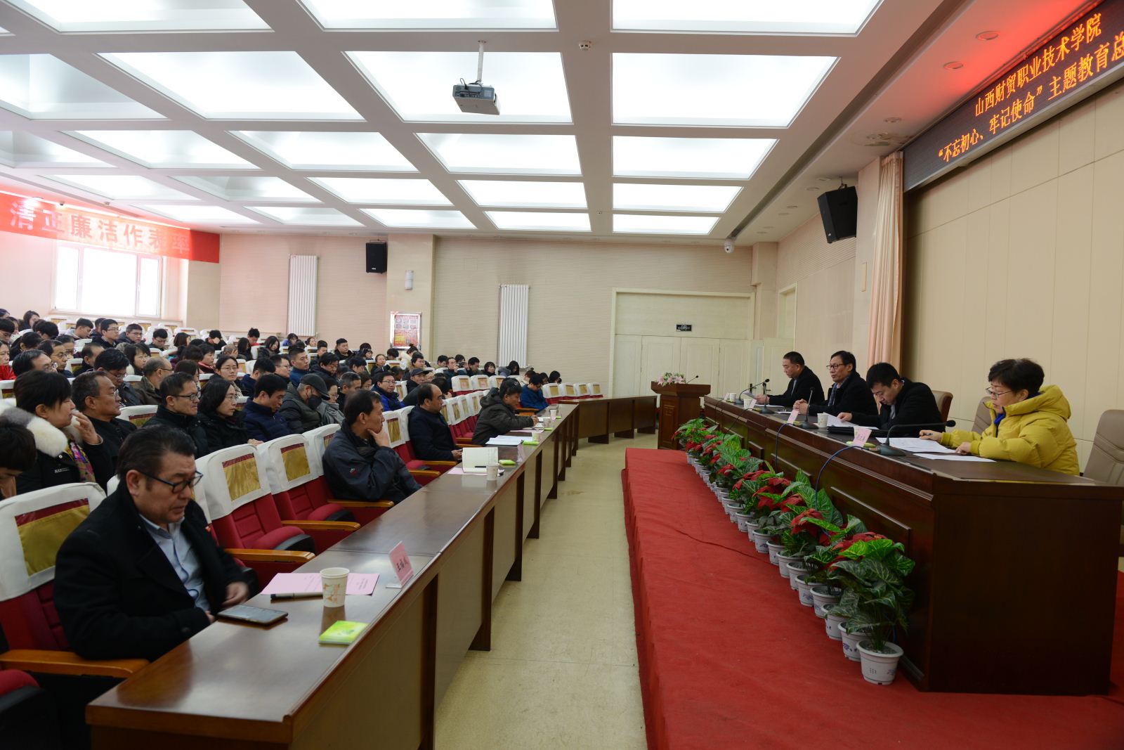最后院长段文美强调,全院上下要认真学习贯彻落实中央、省委“不忘初心、牢记使命”主题教育总结大会精神,努力拓展主题教育成果,把“不忘初心、牢记使命”作为加强党的建设的永恒主题,把主题教育取得的成果转化为广大党员干部投身于学院教育教学改革、落实立德树人根本任务的磅礴动力,写好山西财贸职业技术学院高质量发展的新篇章。