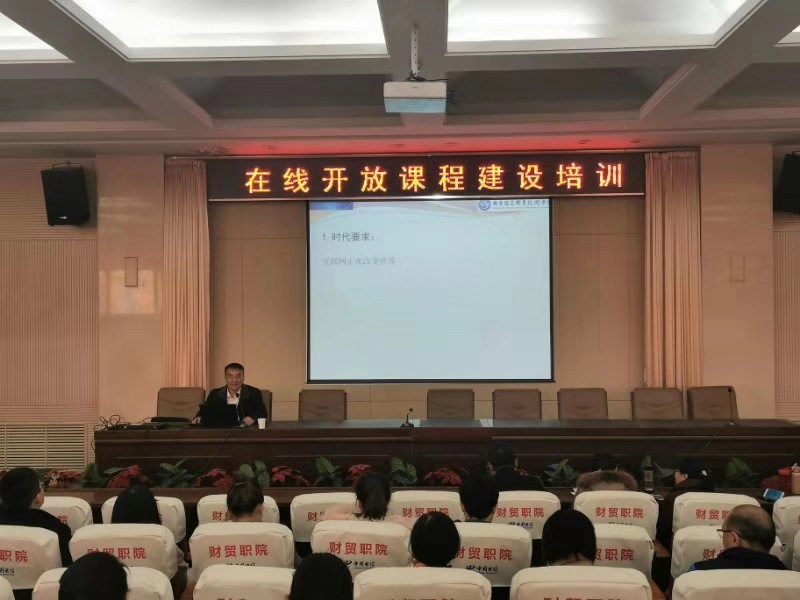 本次培训由教务处长孙金霞主持。在线开放课程建设是深入教育教学改革,加强高职教育内涵建设的重要举措,是全面贯彻落实全国教育大会精神的重要内容,对于学院继续推进教育教学质量提升,强化优质校建设具有重要意义,学院各级领导均给予了高度重视。讲座期间,骈俊生教授从为什么要建设在线开放课程、建设哪些课程、如何进行建设、如何充分应用已建课程以及建设过程中应注意哪些细节等五方面展开进行了详细讲解,并以其已建课程为例,对在线开放课程应达到的教学目标以及应如何达成教学目标进行了重点阐释说明。最后,我院参训教师代表与骈教授就课程建设相关问题进行了探讨交流。