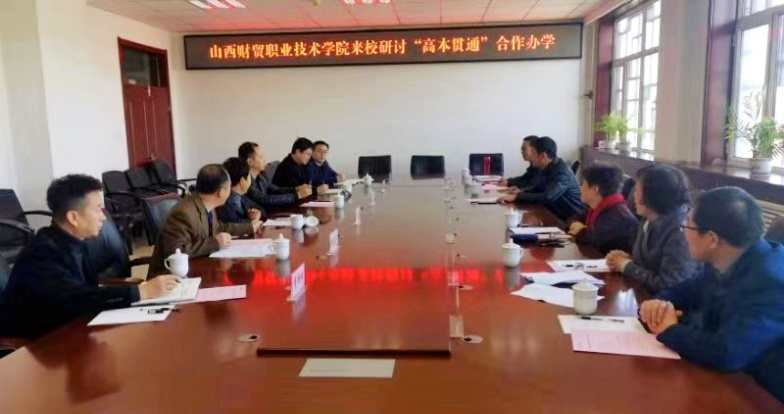 为贯彻落实《国家职业教育改革实施方案》、《山西省人民政府关于贯彻落实< 国务院关于加快发展现代职业教育的决定>》、《山西省高等职业院校与普通本科院校应用型人才培养贯通培养实施方案(试行)》等文件要求,探索应用型人才贯通培养模式新途径,推动高等职业教育持续健康发展,2019年11月11日上午,段文美院长带领我院相关部门一行6人,在太原工业学院行政楼会议室,与太原工业学院副院长吴跃焕及相关部门负责人,共同就两校开展“高本贯通”合作办学事项进行了深入探讨。这次座谈会是在前期双方系、部沟通交流的基础上,召开的一次校级层面、专门就“高本贯通”人才培养合作办学的再讨论会议。
