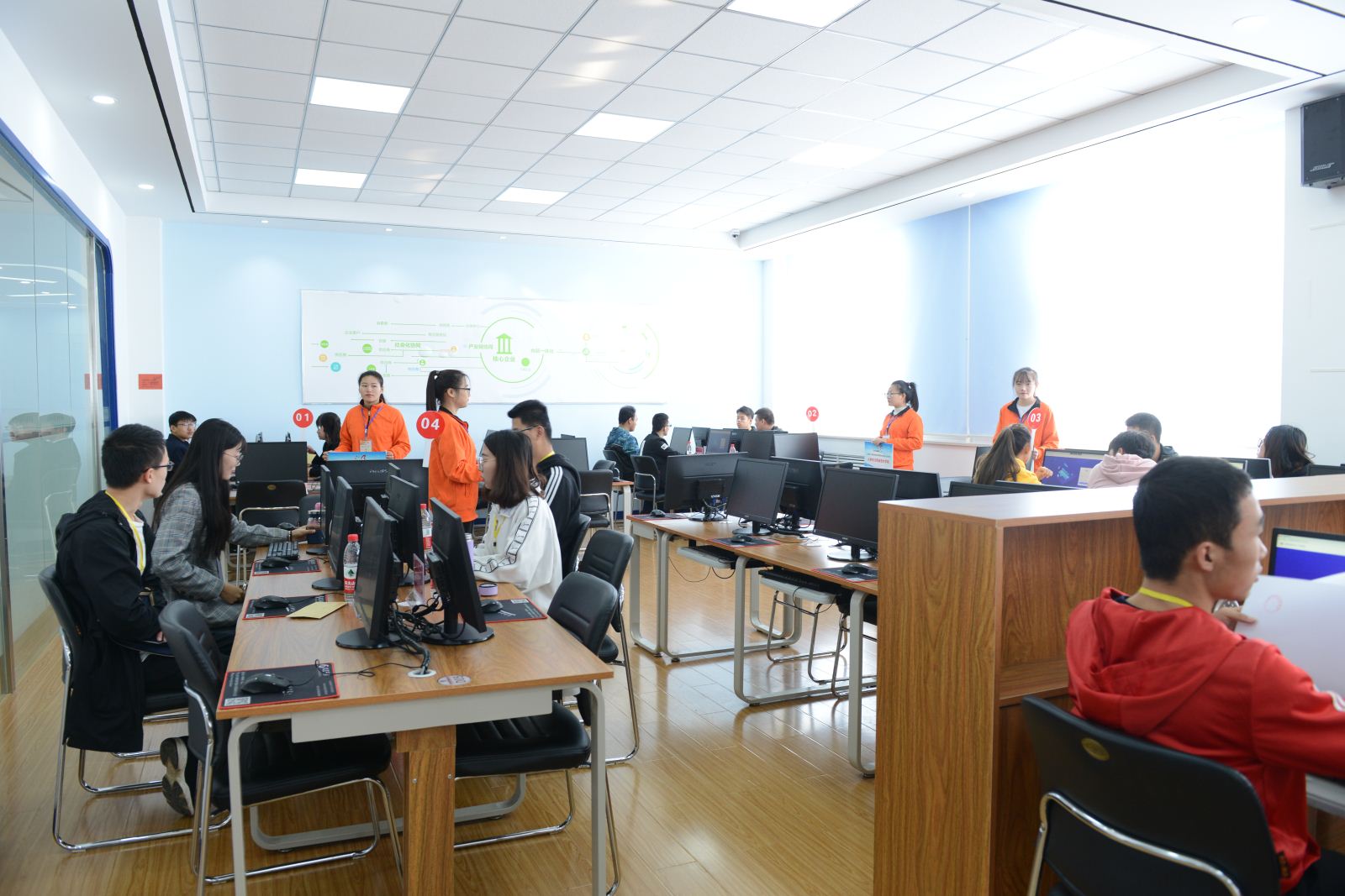 开幕式结束后,在志愿者的引导下,各位选手来到赛场就位。赛场位于山西财贸职业技术学院会计虚拟仿真实训中心。上午九点,比赛准时开始。