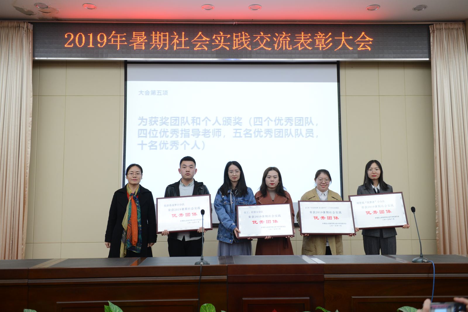 2019年暑期社会实践交流表彰会 暑期社会实践优秀团队:旅游系筑梦小分队、信工经贸小分队、会计系“共筑青春梦 助力新时代”三下乡社会实践队、财管系“筑梦者”小分队 暑期社会实践优秀指导教师:史卓然、王静远、秦晓斐、李艳 暑期社会实践优秀队员合影 暑期社会实践优秀个人合影