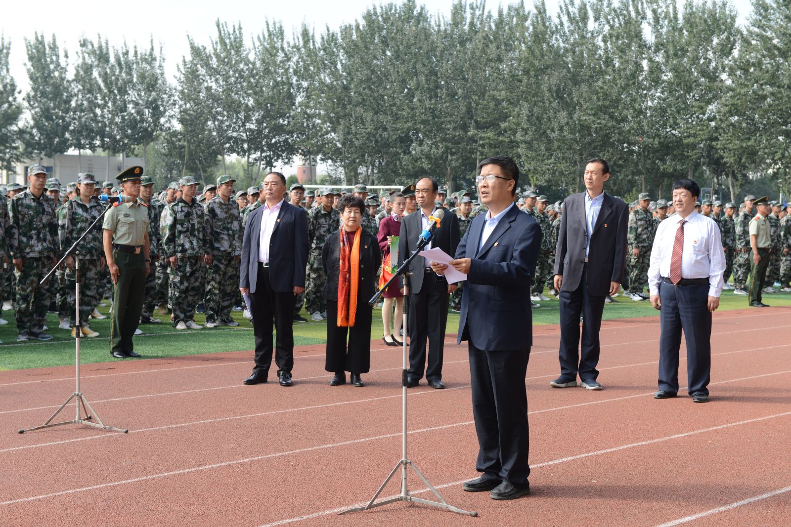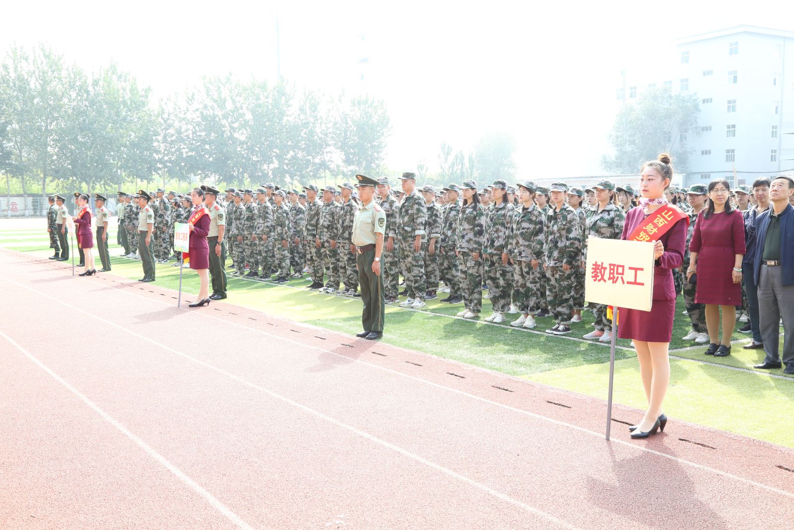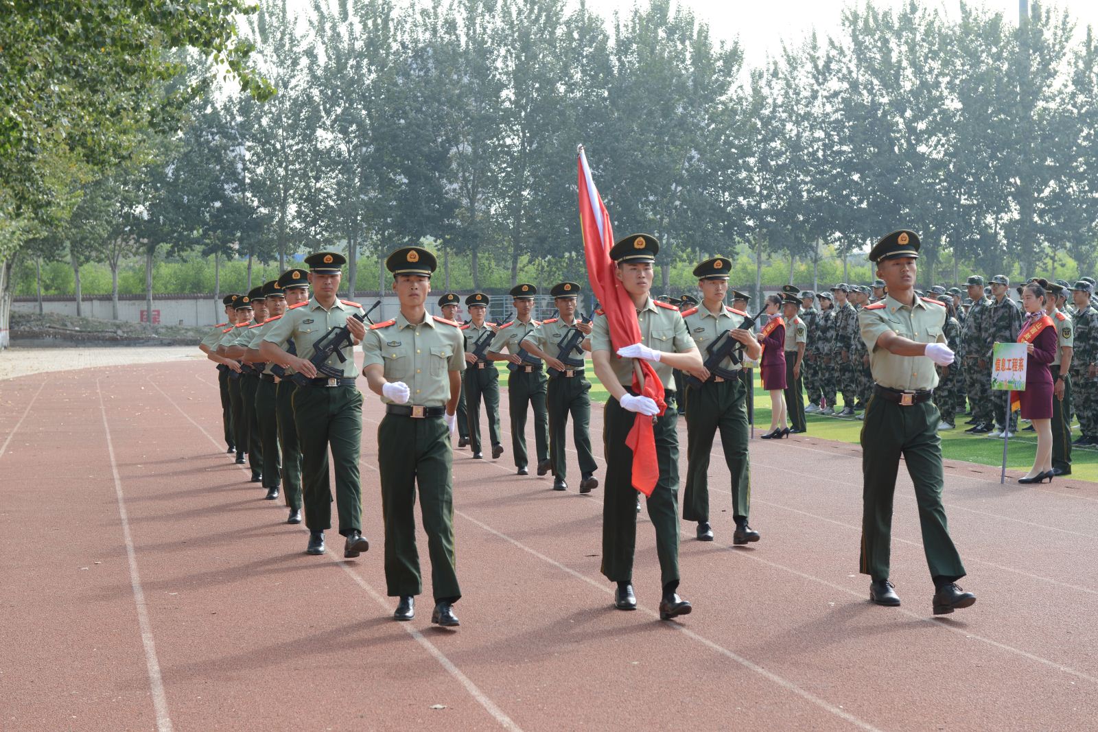 9月23日上午,我院隆重举行新学期升国旗仪式。院领导班子成员、全体中层干部和全院师生参加了升旗仪式,负责我院新生军训的中国人民解放军武警部队某部军事教官也参加了升旗仪式。仪式由副院长尤陶江主持。