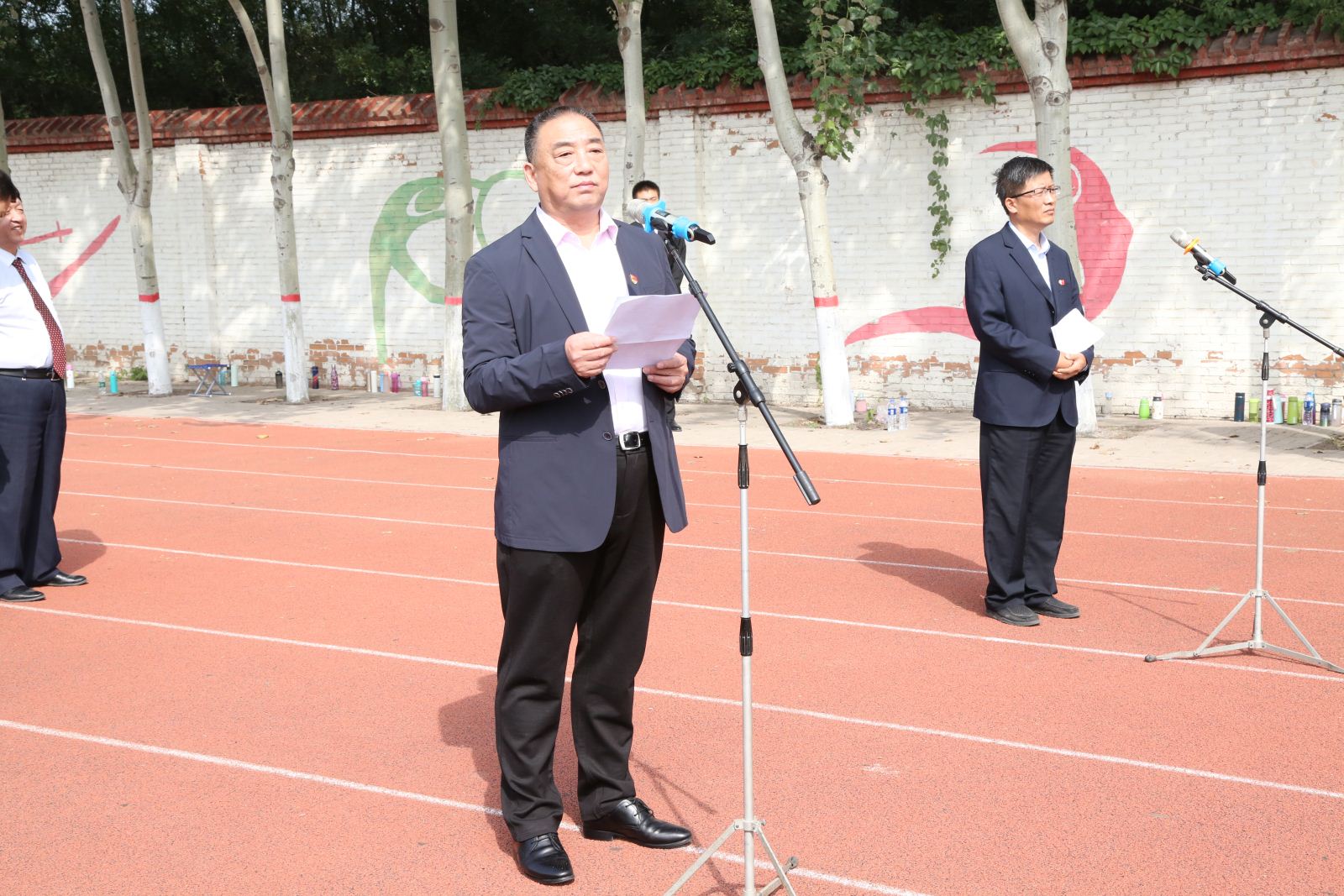 党委书记冯瑞明作讲话。他首先代表党政领导班子向全体师生致以真诚的问候,并对2019级新生的到来表示热烈欢迎! 他对同学们提了三点希望。一是要完善品德,学会为人。希望同学们能够树立正确的人生观、价值观、世界观,陶冶思想情操,净化自身心灵,完善个人品德,做一个诚实守信、胸襟博大、独立自尊的人,向青春告白。二是要勤奋学习,学会认知。希望同学们不仅要在学业上接受知识能力强,而且更应该培养获取知识的能力;不仅要深入学习本专业、本学科知识,而且要广泛涉猎其它领域,做一个既学有专长,又见识广博的人,向祖国告白。三是要勇于创新,敢于拼搏。希望同学们努力培养自己的创新思维和创新能力,提高实践能力、分析和解决问题的能力;立大志、想大事,从一点一滴做起,脚踏实地、直面困难、勇于挑战、努力拼搏、不懈奋斗,提高在未来社会中立业立足的竞争能力,做社会的栋梁。希望青年一代在实现中华民族伟大复兴中国梦中实现人生价值,用青春向时代告白,用青春向祖国告白!