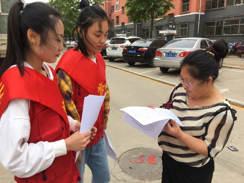 同学们带着具有专业特色的为民服务宣传资料、海报等,开展了具有专业特点的便民服务。院学生会的同学们走到居民中间,集中讲解有关防电信诈骗相关知识,增强了居民的安全意识;青年志愿者协会的志愿者们向居民了集中讲解了有关环境保护的相关知识,将“爱护环境、人人有责”的观念深入人心;会计系同学利用会计学知识教会便利店收银员如何辨别新版人民币的真假;经贸系同学主要围绕“打假维权”向社区居民进行宣传讲解,通过准备好的宣传资料和海报集中讲解打假维权有关知识;信工系同学围绕所学专业向社区居民普及了电脑维护以及简单的软件升级等相关知识,并为他们的电脑进行了系统更新和软件升级;财管系同学通过走访入户到社区空巢老人家中,帮助老人收拾屋子,清洗碗筷,打扫卫生,为老人送去了关怀和温暖,并向老人们宣传了注意饮食卫生和用火用电的安全知识。旅游系同学为社区居民宣传了文明旅游方面的知识,例举了旅游活动中的一些不文明现象的危害,告诫大家要文明旅游。