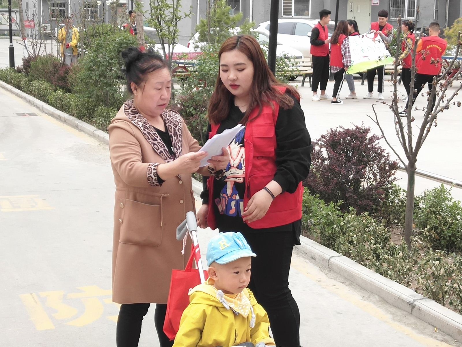向社区居民发放及讲解防电信诈骗及保护环境等宣传资料