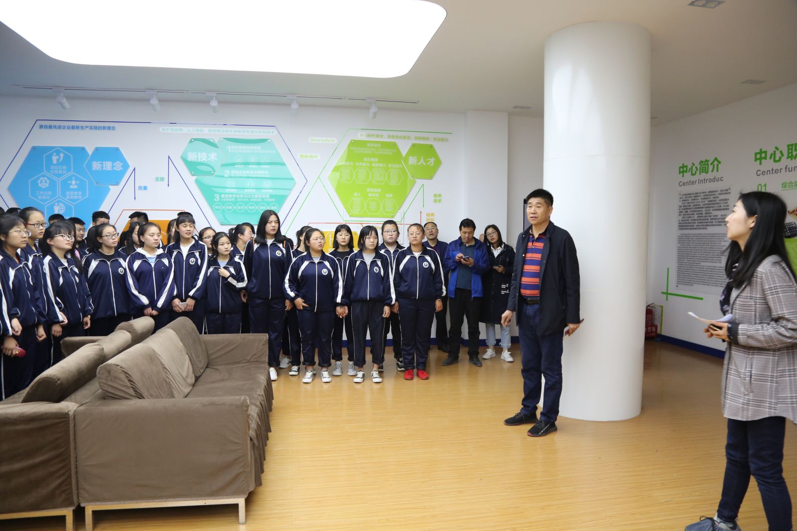 为庆祝中华人民共和国70周年,展示职业教育办学成果,5月8日,我院迎来了122名远道而来的客人,他们是文水县徐特立中学的师生们和校企合作方企业代表、山西枥志圆文化传播有限公司总经理等。 为促进两校的进一步交流合作,我院在砺志楼大报告厅举办了两校交流活动仪式。仪式上,副院长郝瑞宏代表我院全体师生对参加这次活动的全体人员表示热烈的欢迎,并就我院历史概况、发展进程、办学特色、教学成效等情况进行了介绍。展示了我院深厚的职业教育底蕴,加深了师生们对我院的了解,他表示此次交流活动为两校的深层交流合作奠定了一个良好的基础。 徐特立中学校长对我院职业教育发展给予了高度评价,她希望未来两校之间继续积极互动,探索合作新模式。校企合作方企业代表、山西枥志圆文化传播有限公司总经理也作了讲话。 仪式结束后,全体人员进行了合影留念。 参观期间,我院会计系教师带领大家参观了我院会计虚拟仿真实训中心,并对成果展示中心、云财务综合实训中心、商务服务中心、云财务分岗实训中心、双创孵化中心、多功能路演大厅、总控机房等7个部分进行了详细讲解,加深了师生们对会计专业的认识。 随后,师生们来到砺志楼参观了环境艺术设计专业实训室和广告专业生产性实训室,通过专业老师的介绍,全体师生表示收获颇丰。 紧接着旅游系旅游专业学生为学生们实地详细讲解了学院校训“博学、敦行、诚信、创新”的来源、深刻的文化内涵以及其对学生们提出的要求和寄托的希望;在校园晋商文化墙前,讲解员对文化墙上展示晋商历史文化的五幅图片进行了深入介绍,加深了师生们对晋商文化的认识。 通过本次参观交流,展示了我院职业教育改革和发展成果,增进了师生对我院办学情况的了解,让师生们更直观地感受和体验了我院的办学特色和风采,帮助他们充分发现职业乐趣、为未来职业启智启蒙。