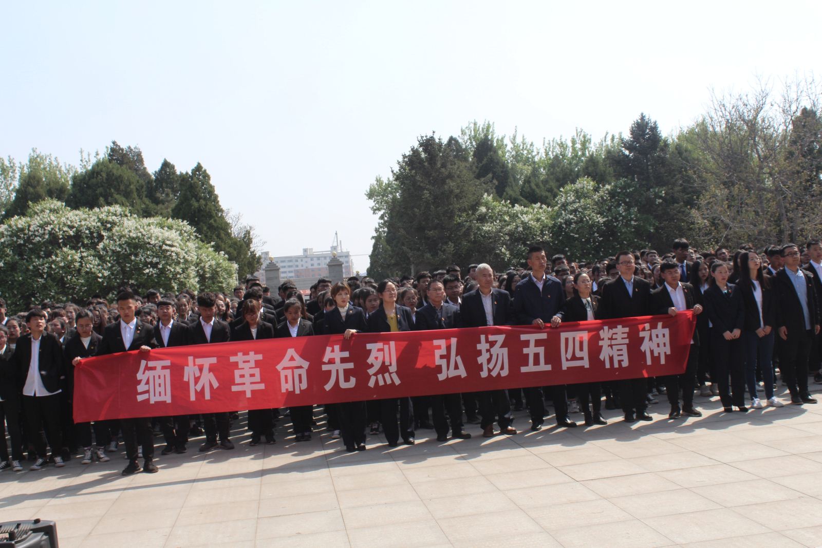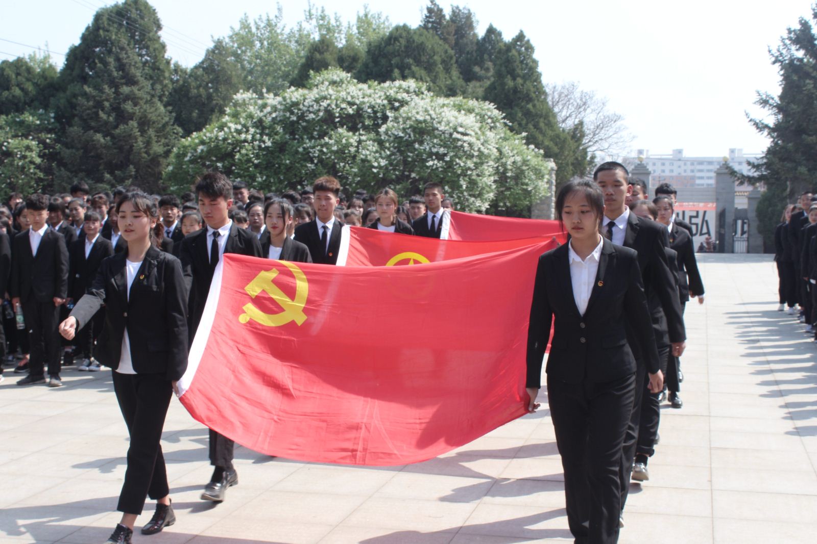 为庆祝新中国成立70周年暨五四运动100周年,激励和引领我院团员青年大力弘扬以爱国主义为核心的民族精神,矢志投身新时代中国特色社会主义伟大实践,院团委于4月17日下午在郑村革命烈士陵园隆重举行了“青春心向党·建功新时代”纪念五四运动100周年暨“改革创新 奋发有为”特别主题团日活动,相关部门负责人及我院500余名团学干部参加了本次活动。 主题团日活动在雄壮的国歌声中拉开序幕。挺拔的国旗护卫队队员,迈着稳健的步伐,向革命先烈敬献花圈,全体师生默哀致敬,对在浴血奋战中献出宝贵生命的革命烈士致以沉痛的悼念和无限哀思。之后,思政部主任刘兆祥老师向同学们讲授了团课,从“五四运动”的历史意义、“五四精神”的时代价值、弘扬“五四精神”争做时代新人三个方面教育和引导同学们坚定理想信念,听党话,跟党走,要勇敢地担负起时代赋予的使命和责任,以爱国、励志、求真、力行为指引,以五四爱国、进步、民主、科学精神自省、自强和自立,努力把自己锻造成为“时代新人”,成为新时代中国特色社会主义事业的合格建设者和可靠接班人,在实现中华民族伟大复兴中国梦的生动实践中放飞青春梦想。 接着,学生代表姜云同学进行了“团旗下的演讲”。50名新团员面向鲜红的党旗、团旗,庄严地举起右拳,用铿锵而坚定的声音齐声宣誓。随后,思政部主任刘兆祥,旅游系党总支书记吴艳东、院团委书记马娟,院团委副书记刘秀峰及各系分团委书记为新团员们佩戴了团徽,同学们坚定的目光和铮铮的誓言展现出我院共青团员积极向上的活力与朝气。 院团委书记马娟对团员青年寄予了殷切期望并提出了三点要求:一要不忘初心,勇立社会主义新时代的潮头,紧密团结在以习近平同志为核心的党中央周围,不断增强“四个意识”,坚定“四个自信”,坚决做到“两个维护”,听党的话、跟党走,争做新时代新青年;二要牢记使命,练就过硬本领,勇于创新创造,锤炼高尚品格,传承红色基因,真正把自己的梦想融入实现中国梦的壮阔奋斗之中,展现新风貌新作为;三要永远奋斗,秉持撸起袖子加油干的精神,做一个想干、敢干、能干的时代新青年,把青春写在光辉的团旗上,在反复磨砺的过程中,收获成长、收获自信。 接着,全体师生在领誓人的带领下,进行了“青年投身改革创新”宣誓,表达了要以奋发有为的精神状态,投身改革创新,为实现中华民族伟大复兴的中国梦努力奋斗的决心。活动在庄严而又充满青春气息的团歌声中落下帷幕。 本次特别主题团日活动是学院团委突出仪式教育感召作用,带领广大团员青年在庄严肃穆的仪式中接受“沉浸式”精神洗礼,牢固树立崇尚英雄、缅怀先烈的良好风尚,汲取红色力量开展的一次重要活动。同学们纷纷表示要弘扬五四精神,秉承先烈遗志,艰苦奋斗、自强不息,听党话跟党走,把爱国情、强国志、报国行自觉融入到中国特色社会主义事业中,为实现中华民族伟大复兴的中国梦努力奋斗!