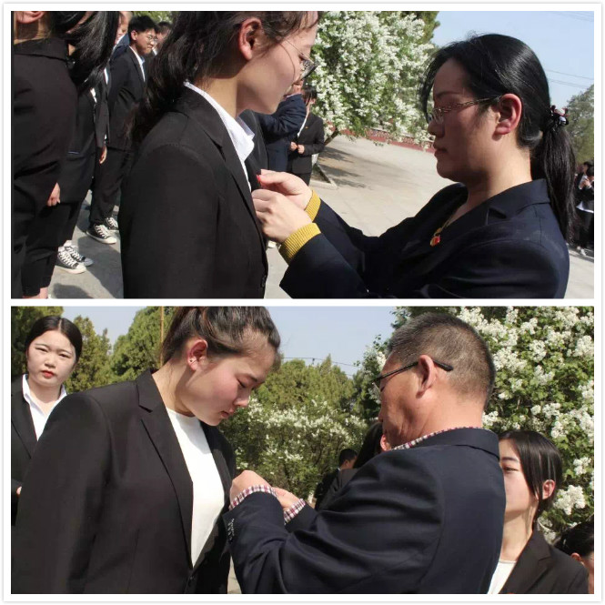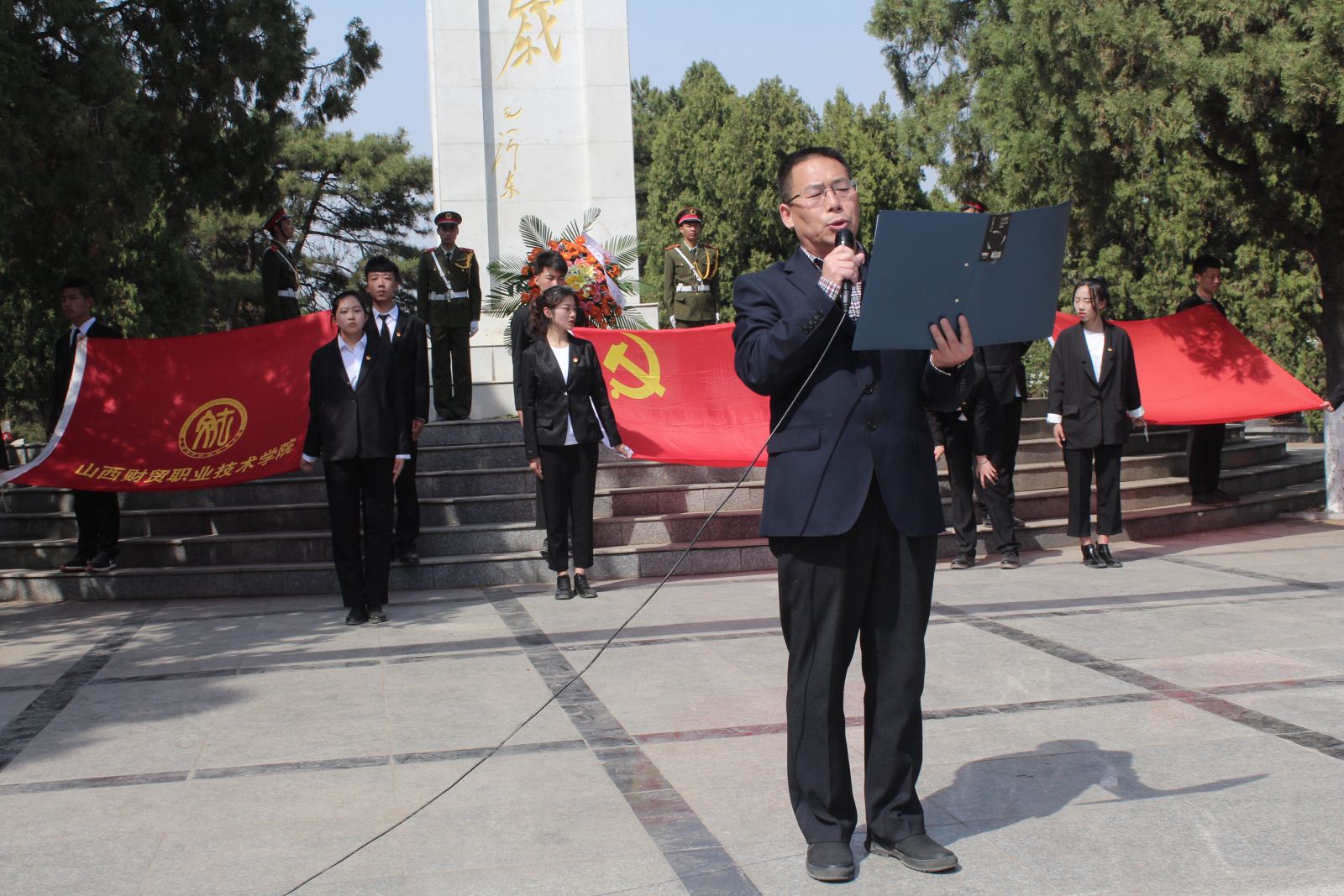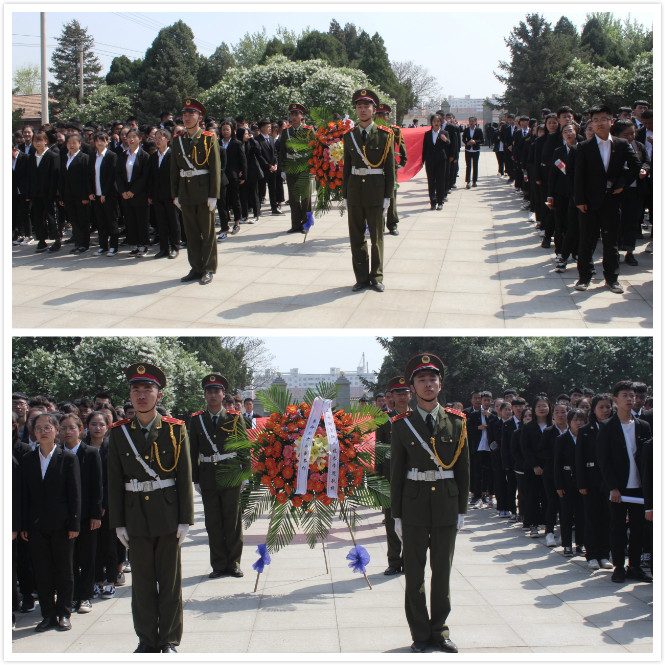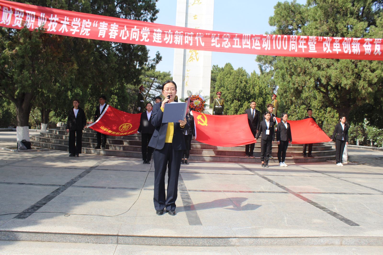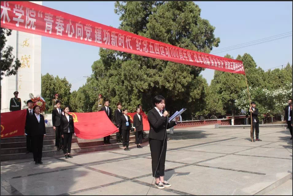 向革命烈士敬献花圈 思政部主任刘兆祥老师讲授微团课 学生代表进行团旗下的演讲 为新入团的团员代表佩戴团徽 院团委书记马娟寄语团员青年 (院团委供稿)