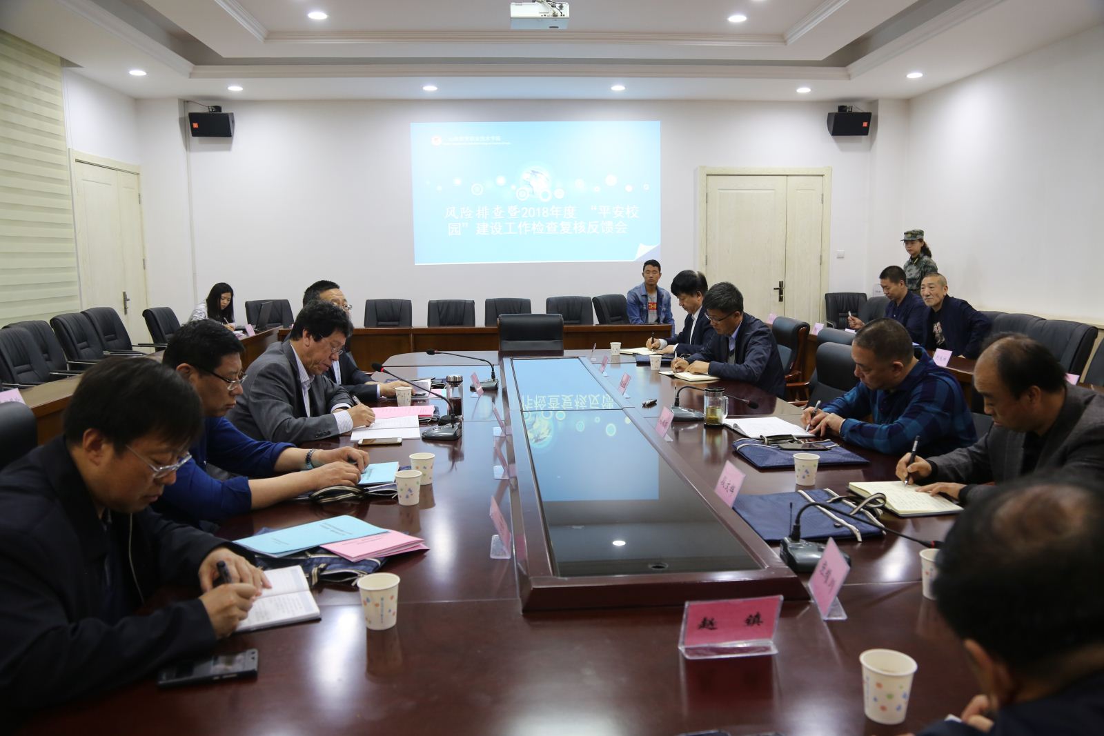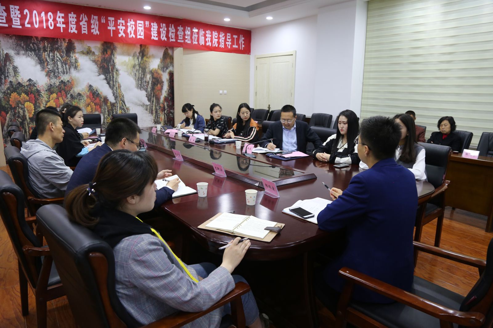 副院长张耀川汇报我院风险排查暨“平安校园”建设完成情况,党委书记冯瑞明最后总结:一大成效:我院安全稳定工作上无问题,校园平安,平安校园;一大特色:安全稳定和意识形态工作上“五防、五稳、五发力”;一大风险:我院道路交通不畅,师生出行带来的交通安全隐患;一大呼唤:全院师生员工呼唤道路平安,生命平安。汇报会后,检查组实地查看了公寓楼、食堂、监控室及图书馆等,并认真查阅了我院风险排查及安全稳定工作的相关资料;召开了座谈会,与师生进行了座谈交流,对学院安全稳定工作做了进一步的了解。 最后,检查组进行了意见反馈并传达教育厅要求。检查组对我院安全工作给予了充分肯定,同时也提出了意见和建议:树立大安全理念,坚持“党政同责,一岗双责”的安全责任体系;进一步加强周边综合治理能力建设;加大对安全工作的投入力度。传达了教育厅的三点要求:一是强化底线思维,提高政治站位;二是强化问题导向,提高防范能力;三是坚持标本兼治,建立长效机制,加强安全文化建设。冯瑞明书记对检查组给予的指导表示了衷心的感谢,并表态:对检查组所有意见建议全部认领,以此次检查为契机,全面推进平安校园建设,努力创建安全文明和谐稳定的校园环境;对教育厅的三方面要求深刻认识,全面领会,从党委、领导班子到各级基层组织要求实、求真、求实效;代表学院党委、师生员工感谢检查组一行对我院工作的指导,我们一定努力整改,深化落实,确保我院风险排查和安全稳定工作迈上新的台阶,推动学院持续安全稳定发展。