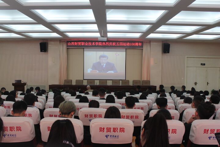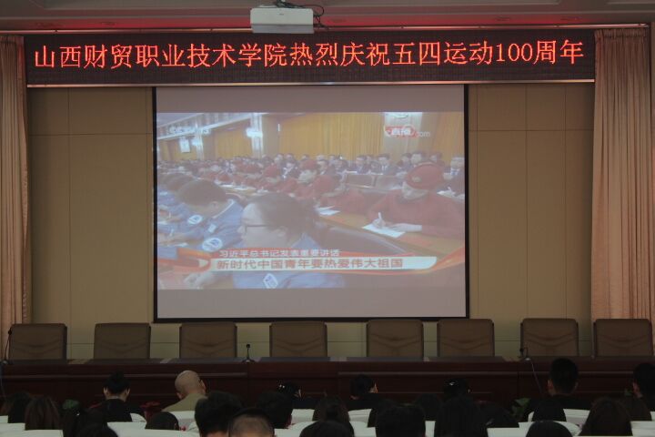 纪念五四运动100周年大会4月30日上午10时30分在人民大会堂举行。学院团委组织我院青年团干二百余人在励志楼大报告厅观看了大会直播盛况,参加观看的人员有院团委、各系分团委专兼职团干,院系学生会、社团主要学生干部,各班团支书等。